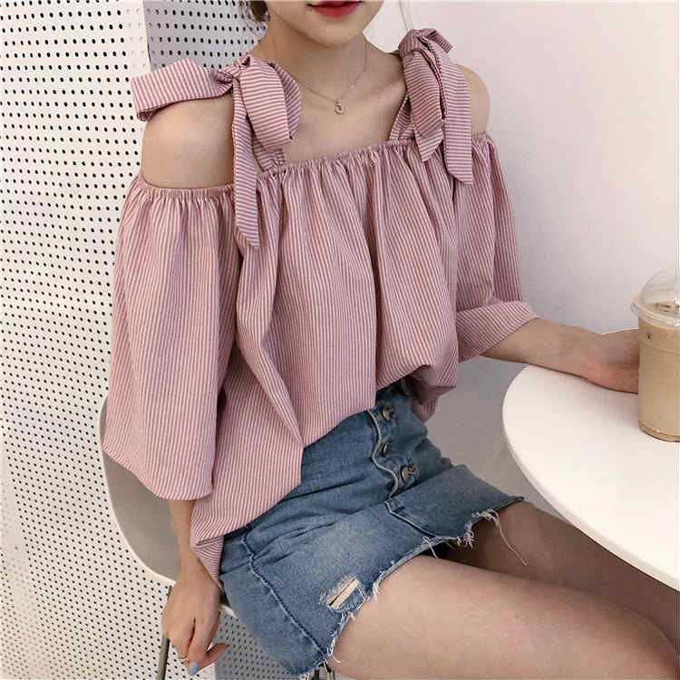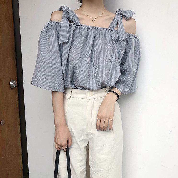 レディースブラウスオフショルダー肩リボ