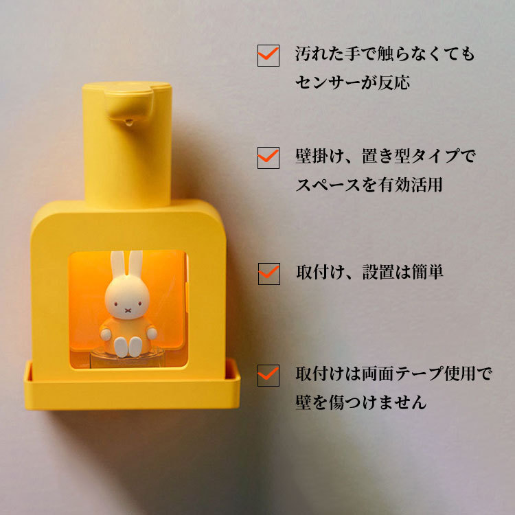 ミッフィー ソープディスペンサー 自動 泡 壁 おしゃれ かわいい Miffy ハンドソープ オートディスペンサー グッズ 400ml 壁掛け 防水 自動ディスペンサー 充電式 セット 穴開けない 人