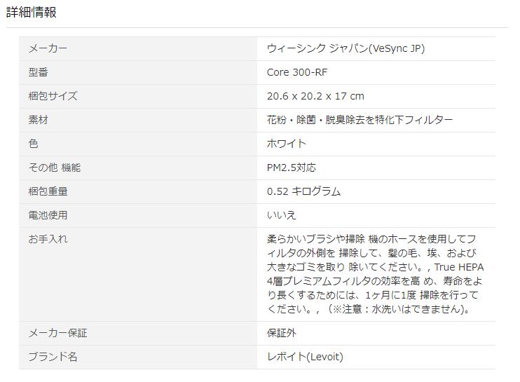 Levoit 空気清浄機 交換用フィルター【個包装1個】 花粉 花粉対策 除菌 静電HEPA フィルター Core 300-RF-JP 適用空気清浄機 Core 300 Core P350 Core
