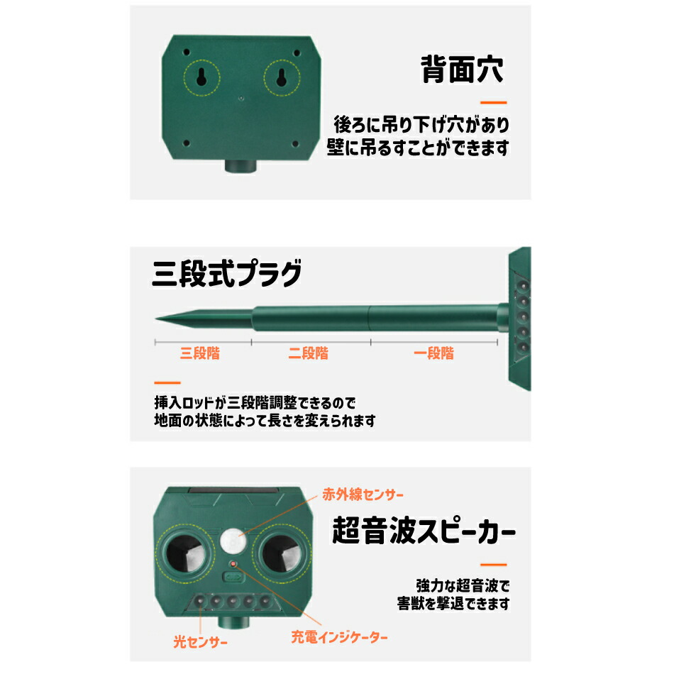 動物撃退器 超音波 ソーラー式 赤外線