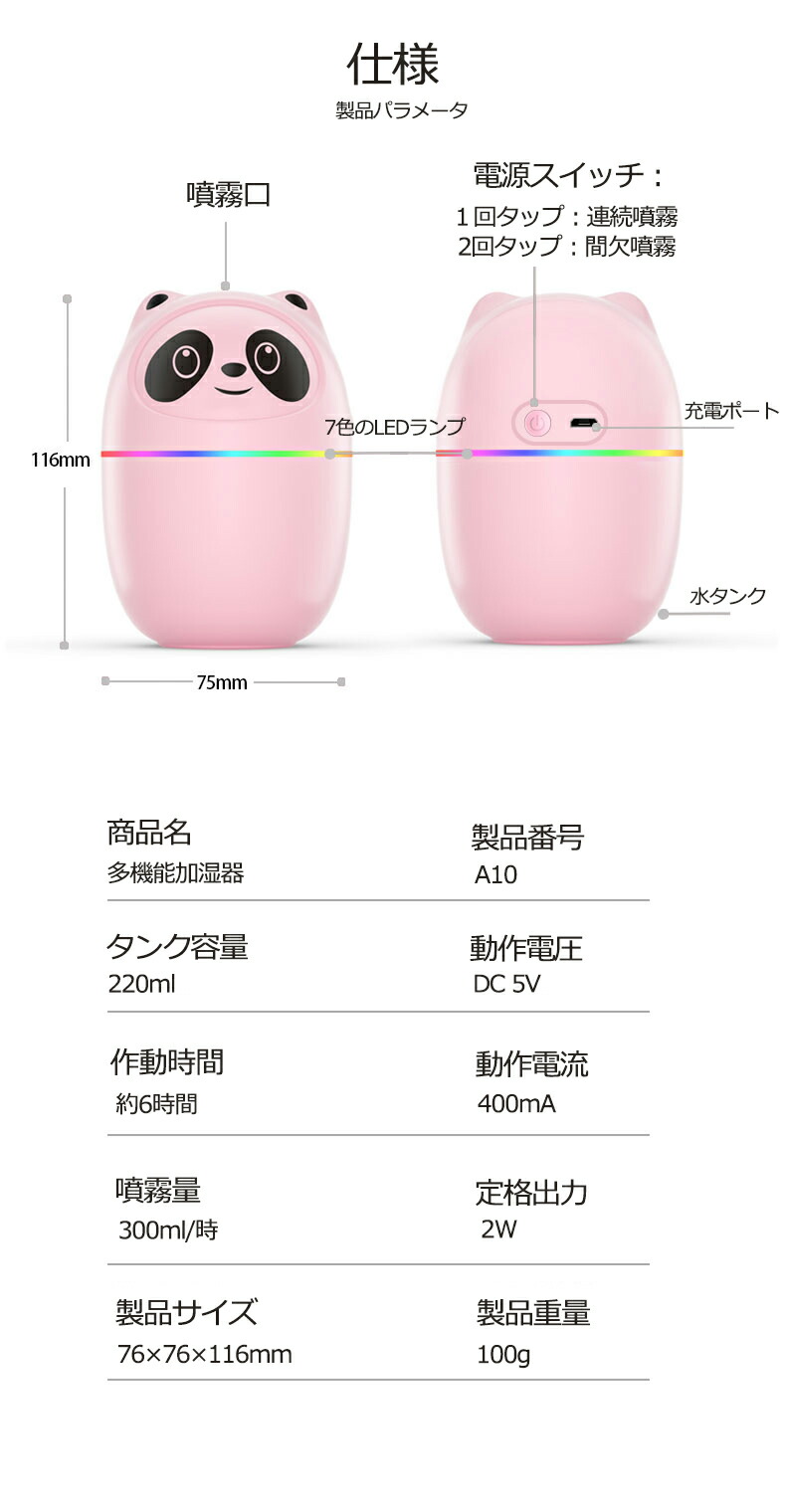 加湿器 卓上 かわいい パンダ 卓上加