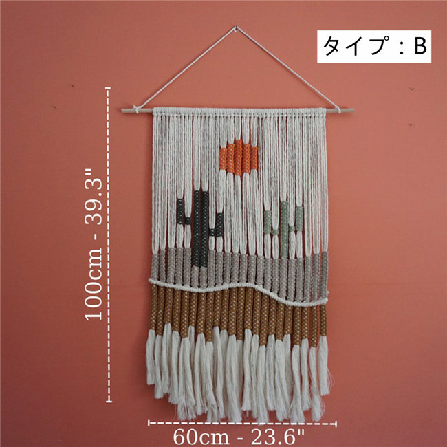■ひとつずつ丁寧に手編みされたタペストリー。長いフリンジ部分が印象的で、とてもインパクトがあるデザインでインテリアのアクセントになります。お引越しのプレゼントなどにもおすすめです。
