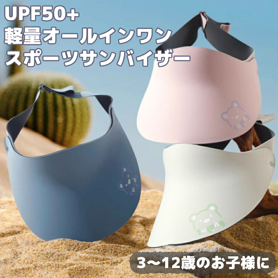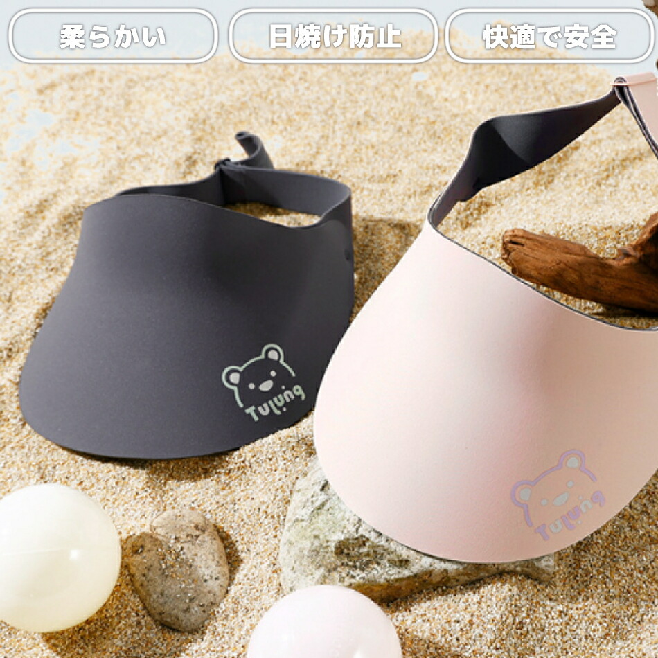 キッズ サンバイザー UPF50+ UV 日除け 日よけ 帽子 コンパクト スポーツ おしゃれ 日焼け防止 夏 uvカット UVカット つば広 子供 洗濯機 洗濯 軽量 クマ イラスト