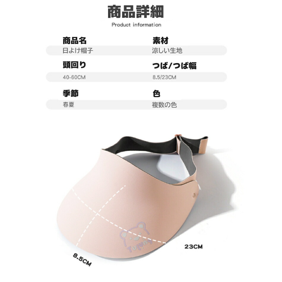 商品詳細商品名 キッズサンバイザーサイズ 頭周り:40-60cm