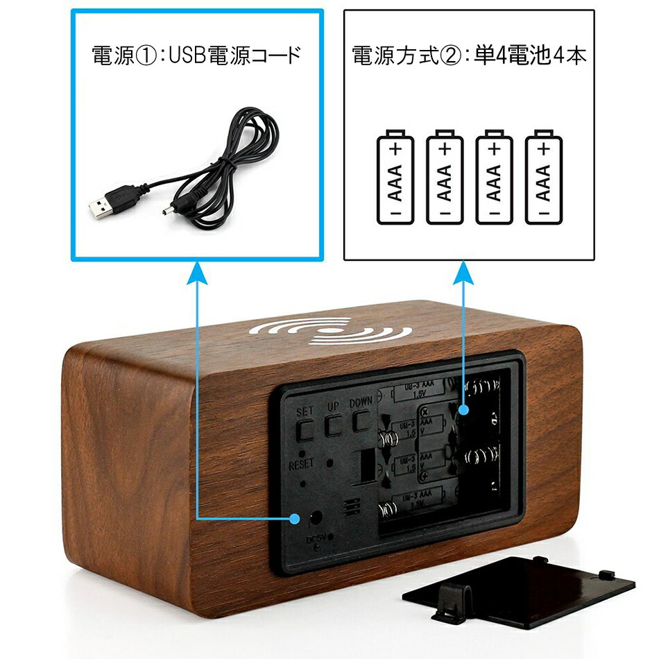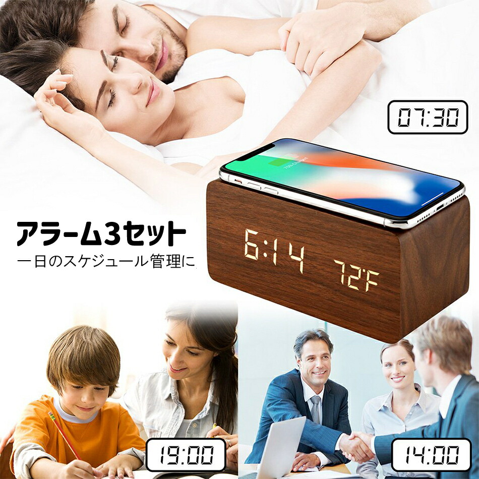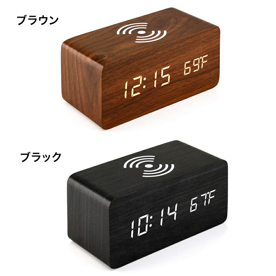 デジタル時計 木目調 ワイヤレス充電