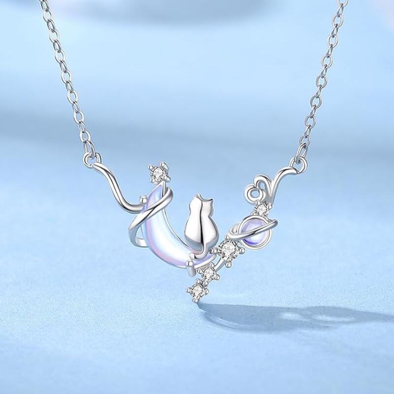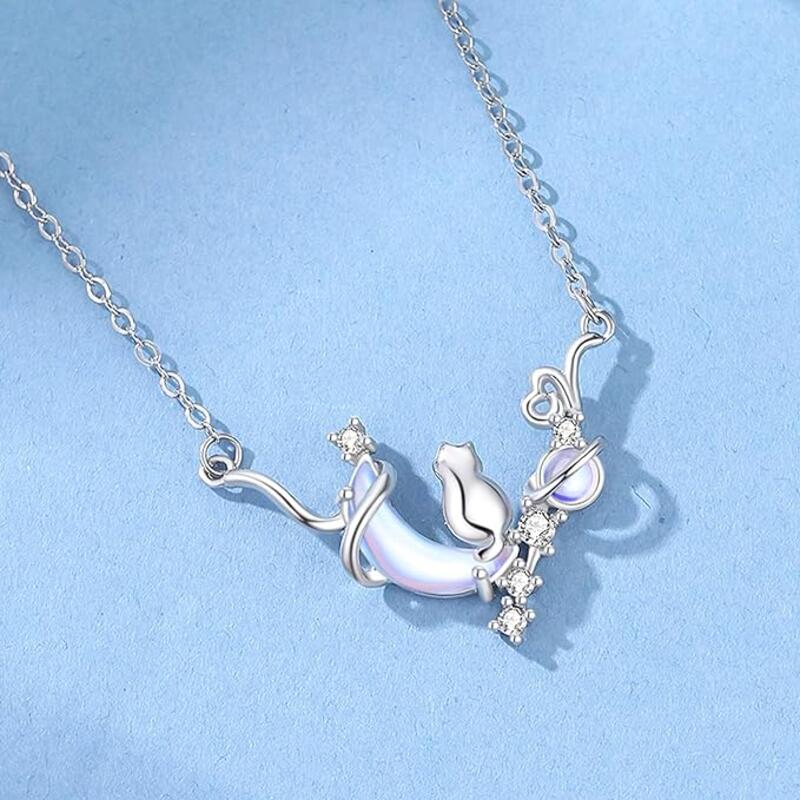 ネックレス レディース 猫 月モチーフ
