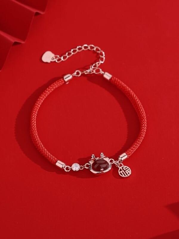 ブレスレット レディース 赤瑪瑙 福牌 龍モチーフ シルバー925製 手編む つけっぱなし 十二干支 竜年 お呼ばれ パーティー 誕生日 記念日 成人式 贈り物 辰年 お守り ジュエリー ギフト
