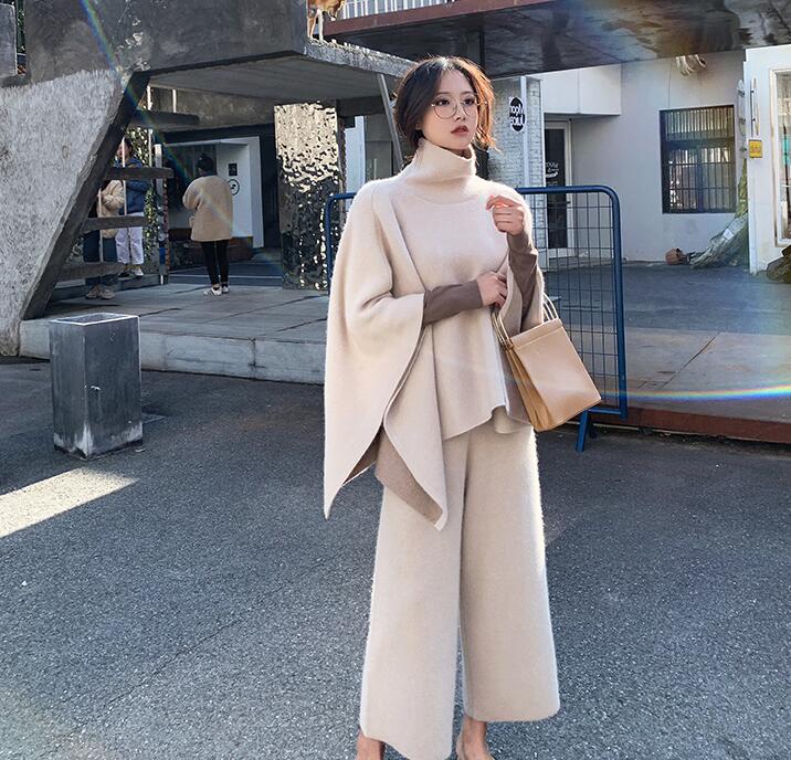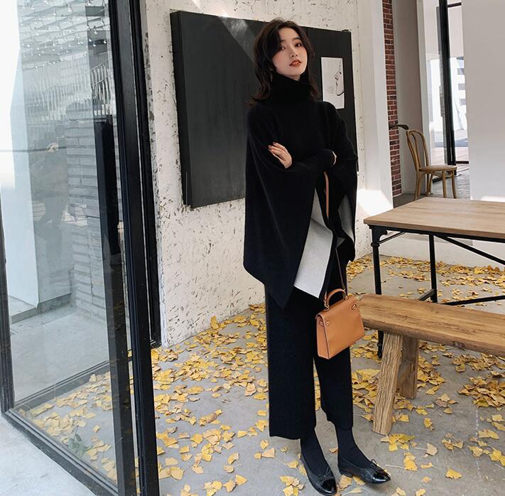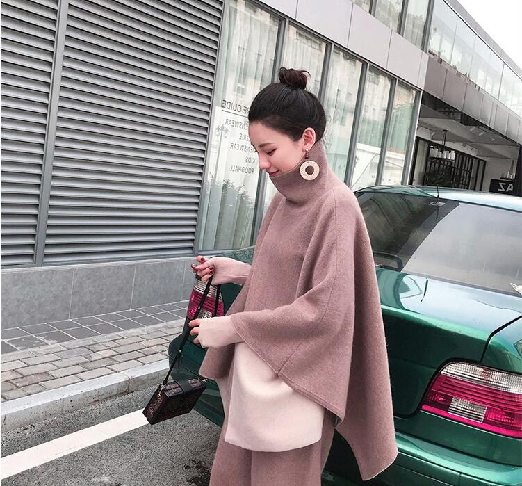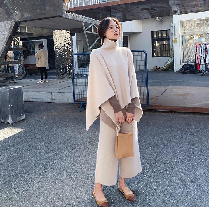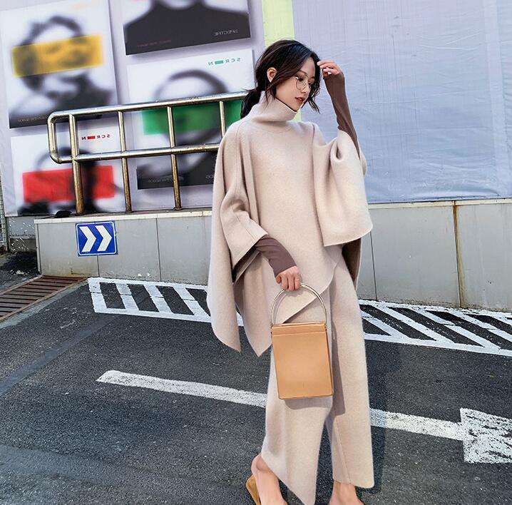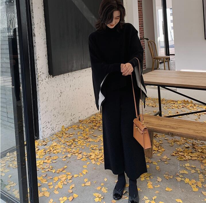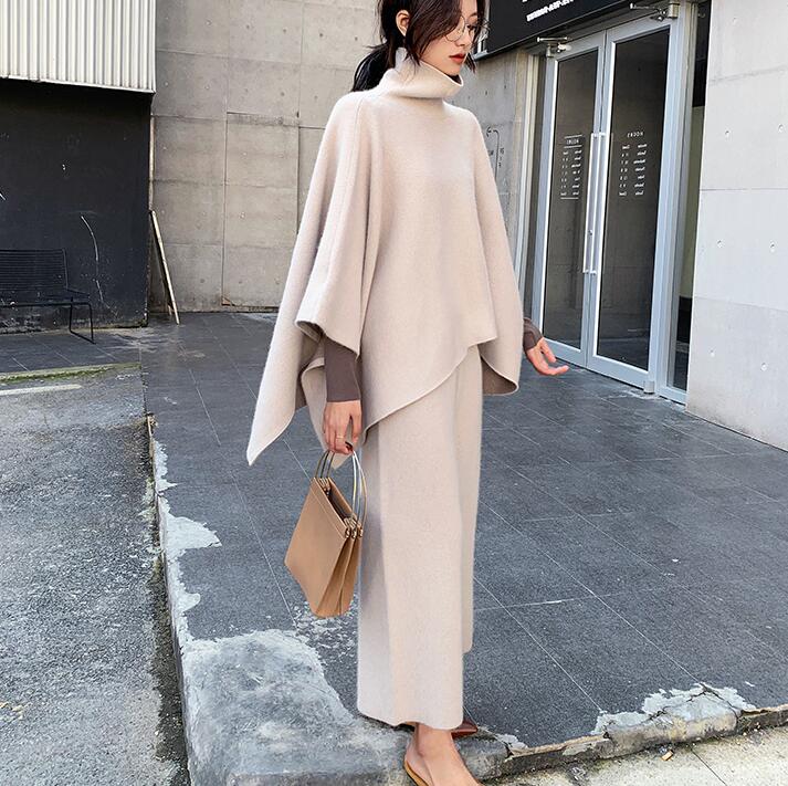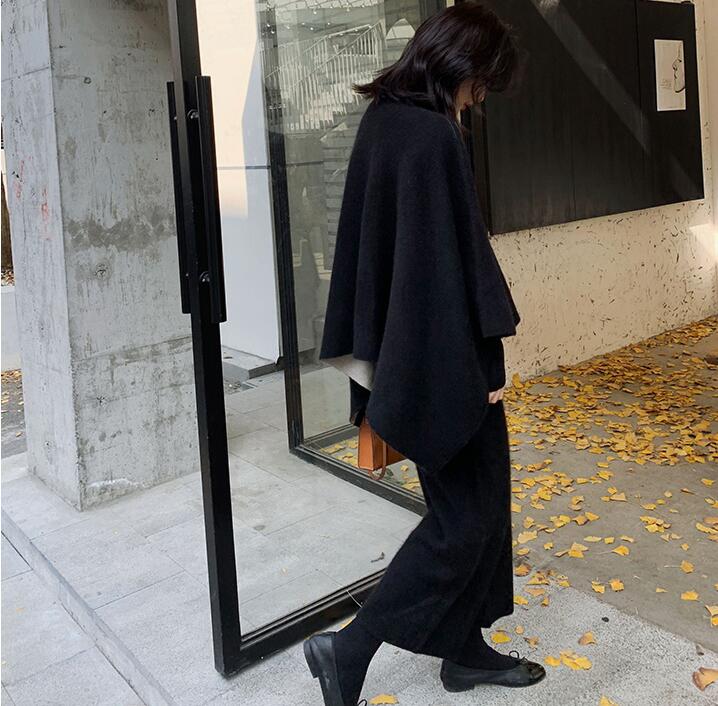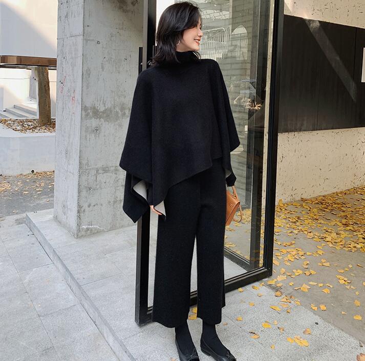 ニットセットアップセーターポンチョウー