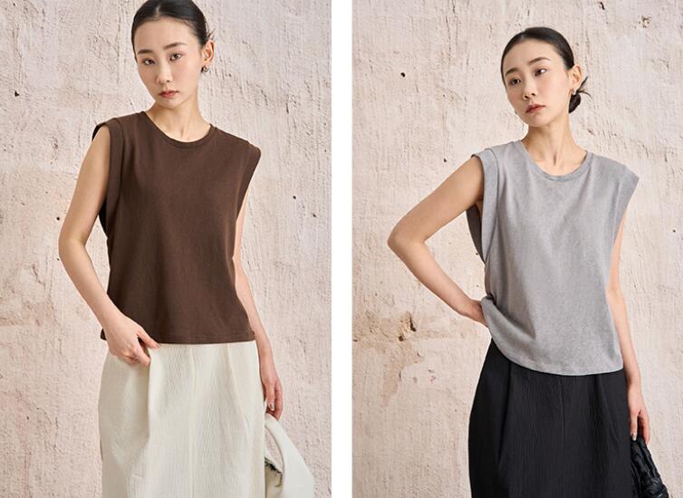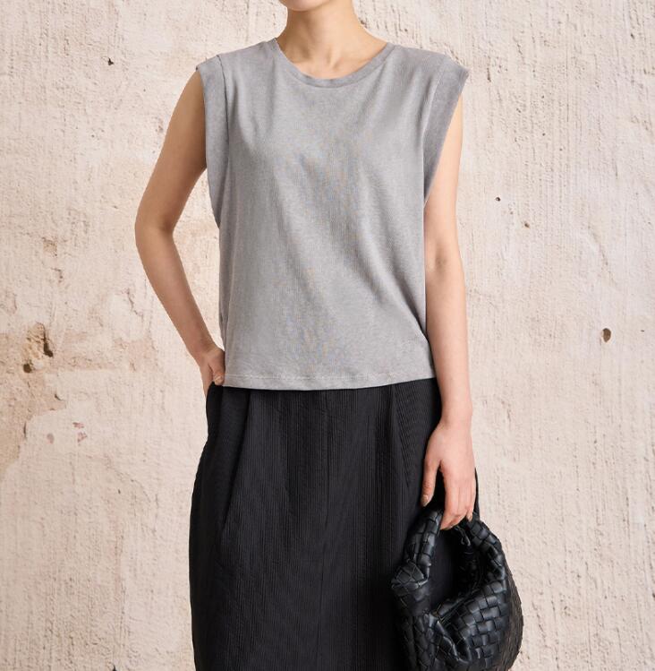 タンクトップレディースTシャツノースリーブUネックロゴプリント