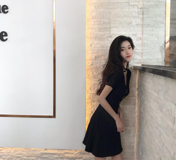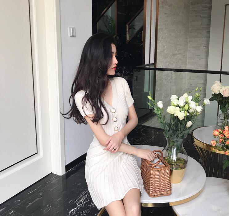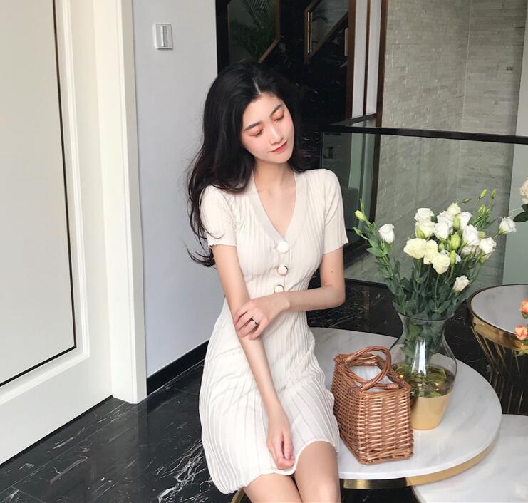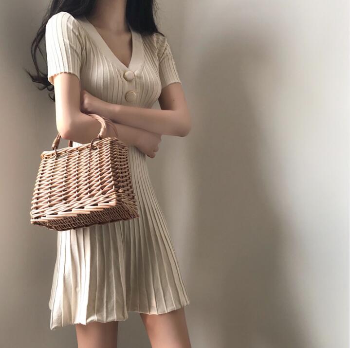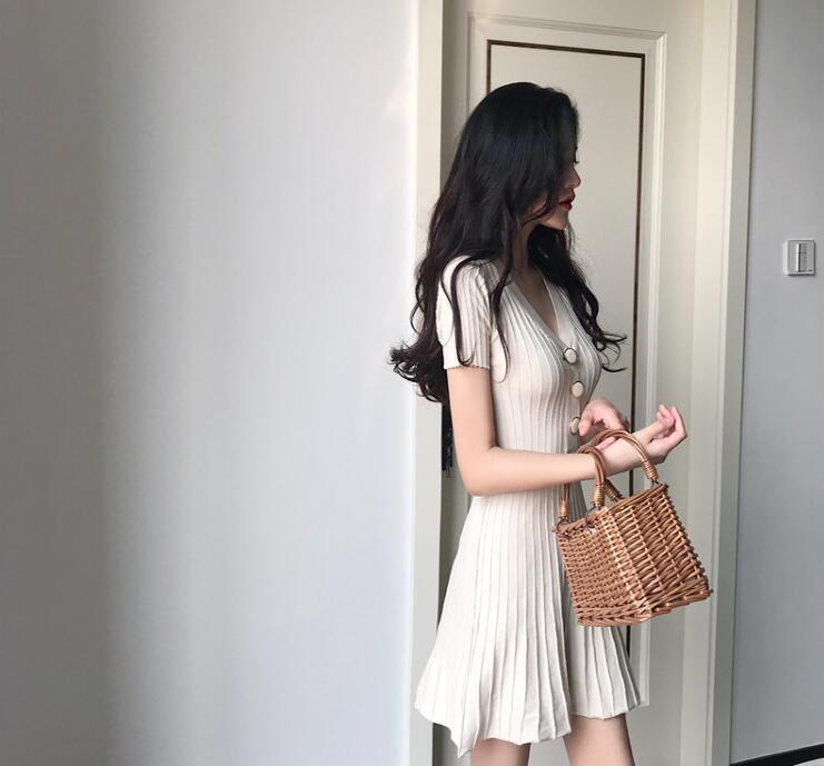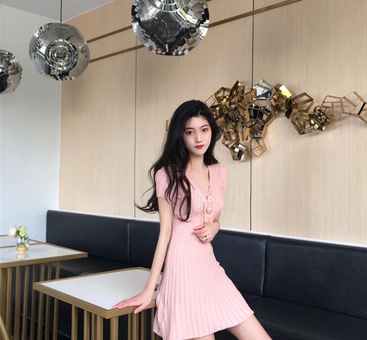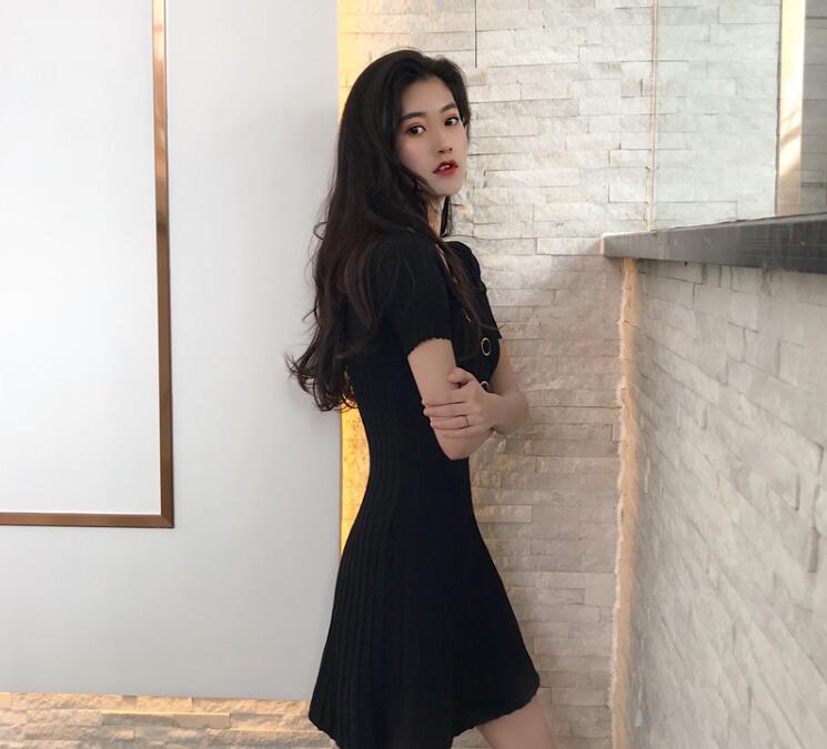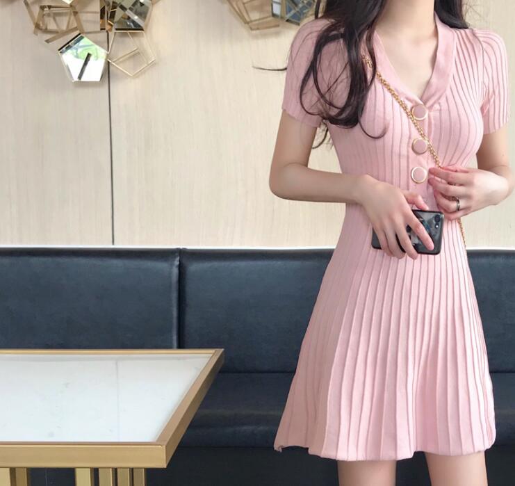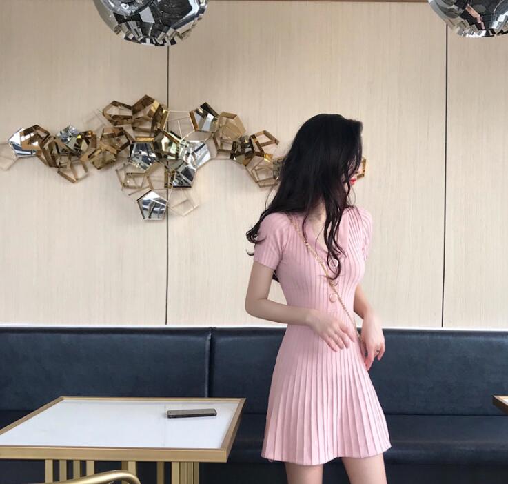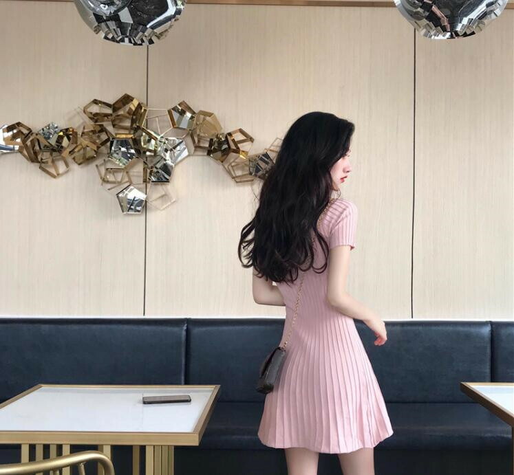 サマーニットリブニットワンピース半袖タ