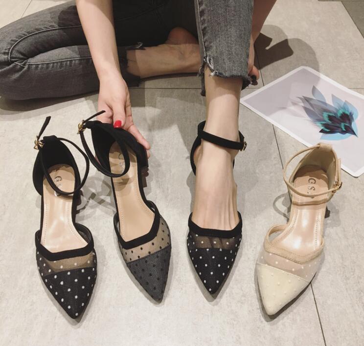 全3色 ドット柄シースルーパンプス 大