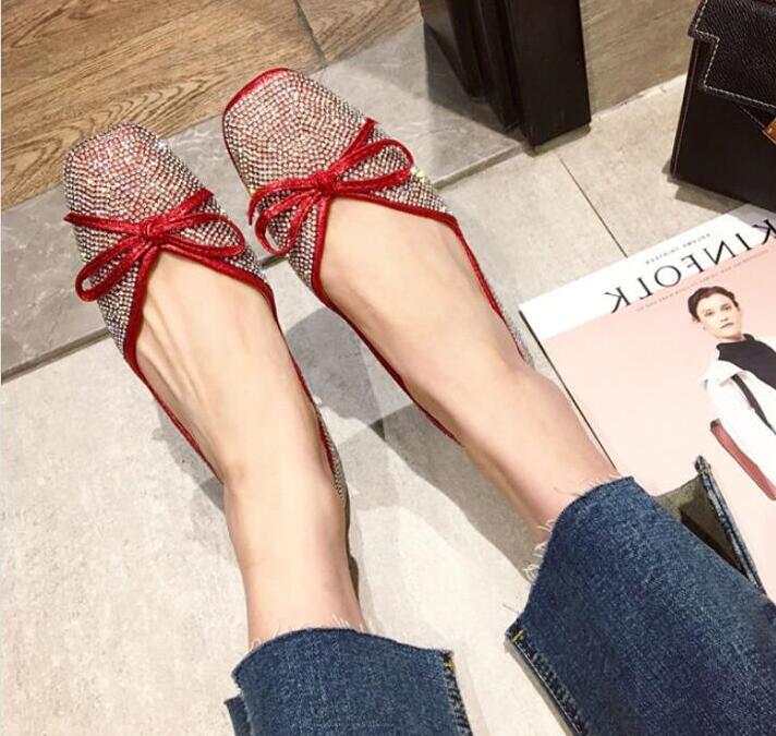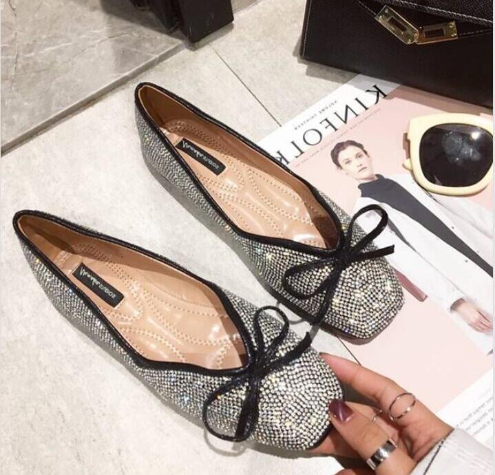 ラインストーンパンプス フラットシュー