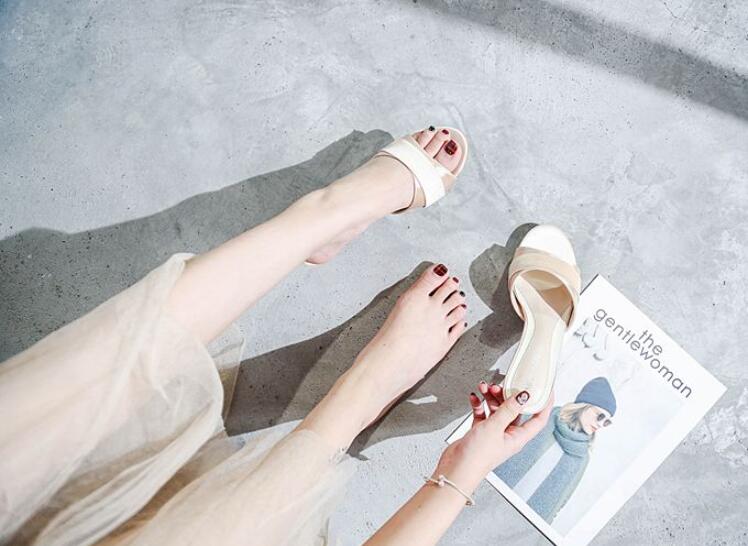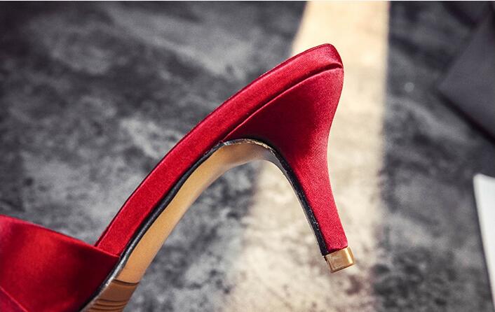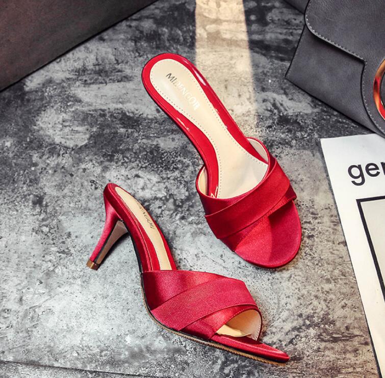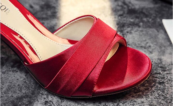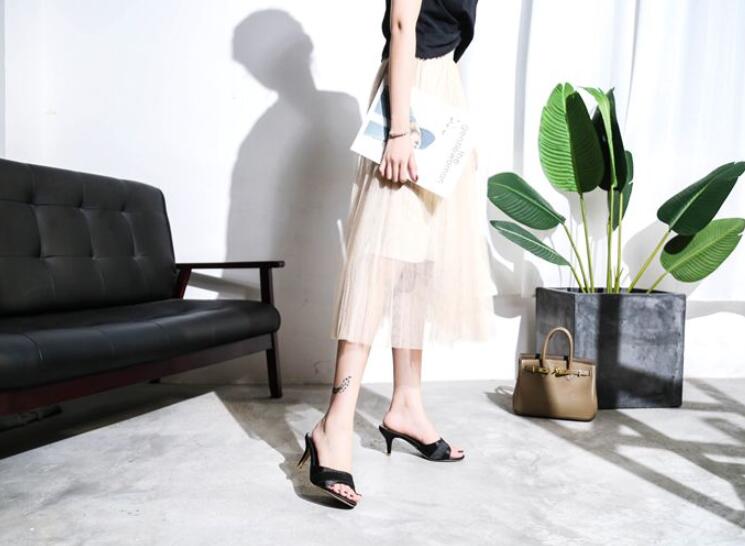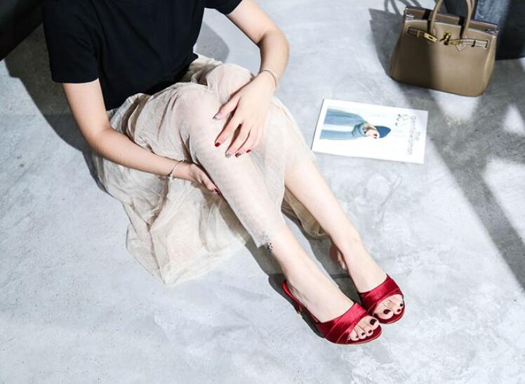 長脚効果サテンミドルヒールサンダルレディースミュール大きいサイズ靴 レディース靴 ミュール