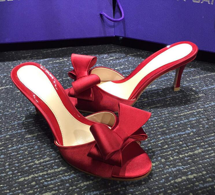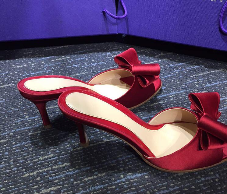長脚効果サテンミドルヒールサンダルレデ