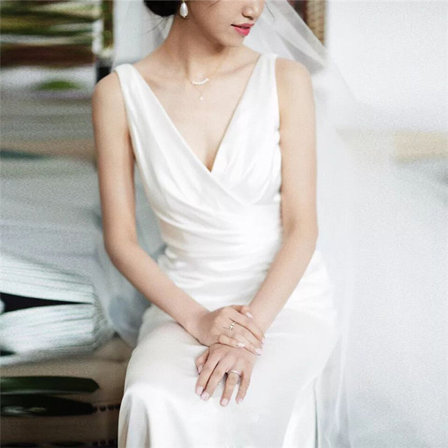 ホワイトノースリーブ ウェディングドレ