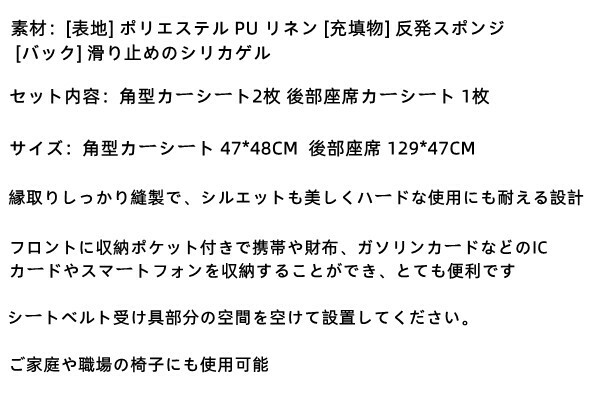 車用 シートカバーセット カーシートクッショ 前座席用2枚+後部座席用1枚 カーシートカバー 座布団 シートクッション 座席シート 3枚組 カー用品 通気 旧汗 吸湿 四季に使用可
