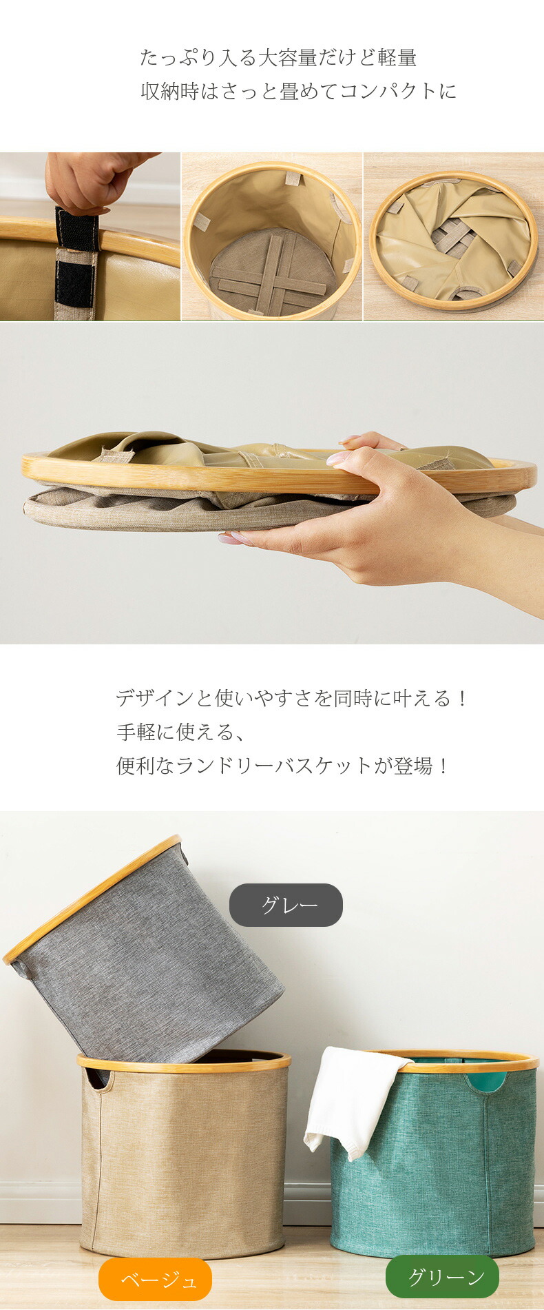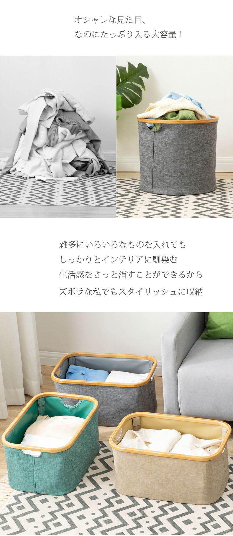 ランドリーバスケット 折りたたみ 大容