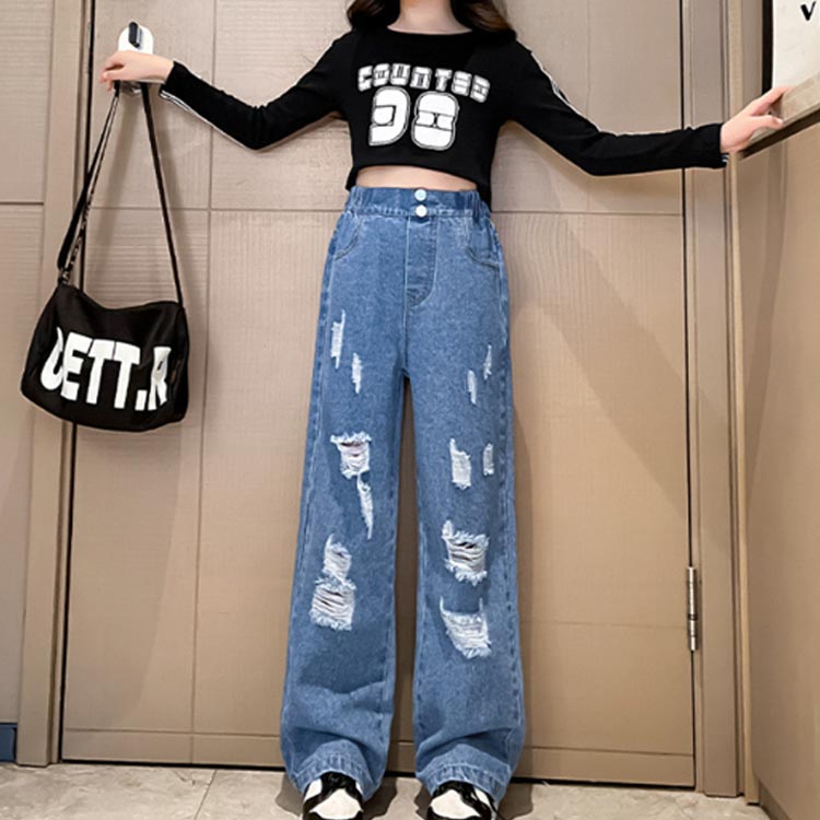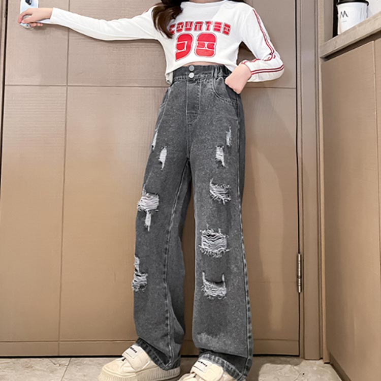 デニムパンツ ビジュー付き