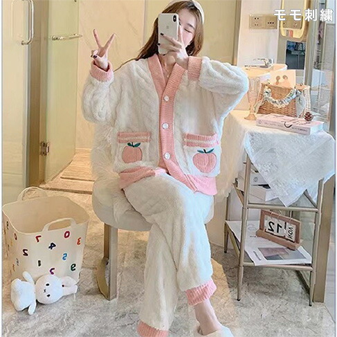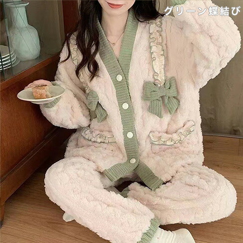 女性パジャマ ルームウェア もこもこ上