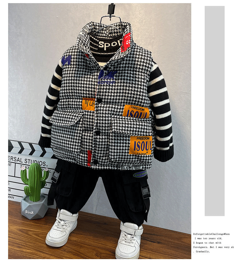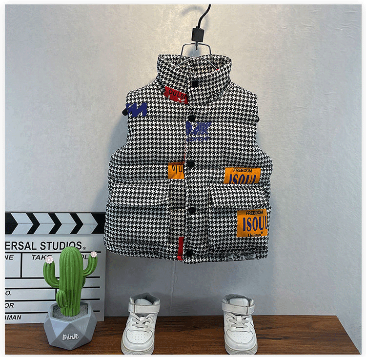 千鳥格子キッズダウンベスト 軽量 おし