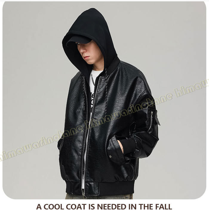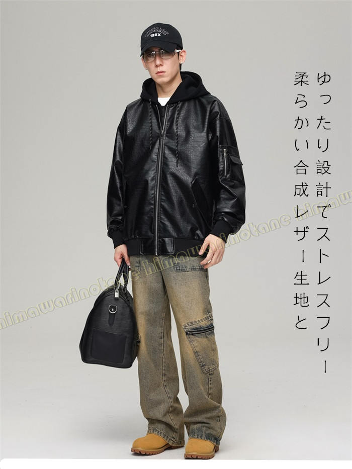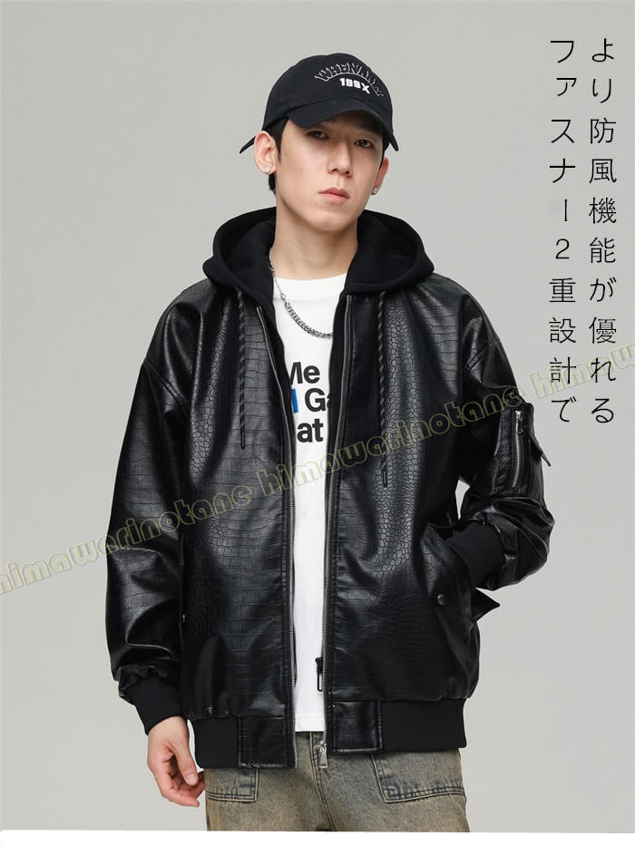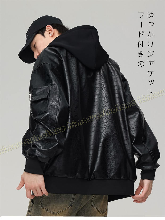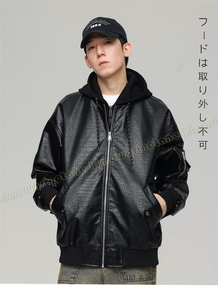 フード付きライダース ジャケットレザー
