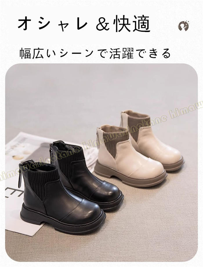 ブーツ キッズ 黒 ソフトレザー 秋冬