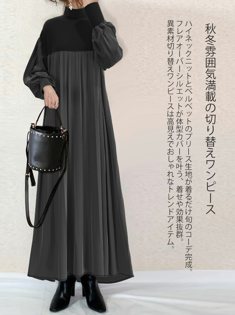 ハイネックニットワンピース 秋 冬 ロ