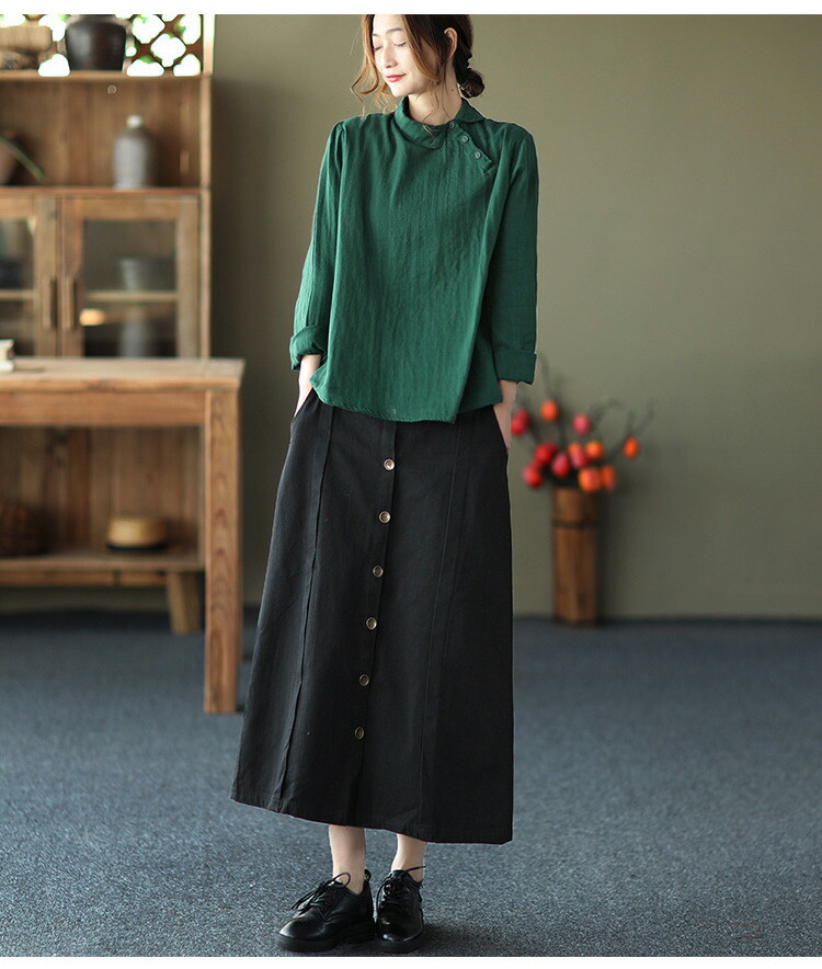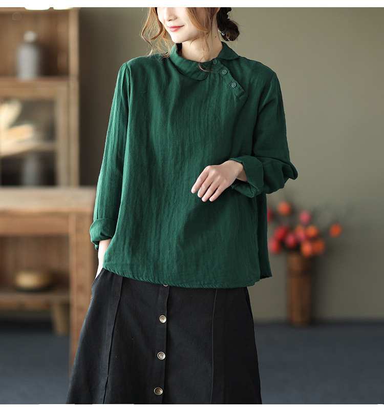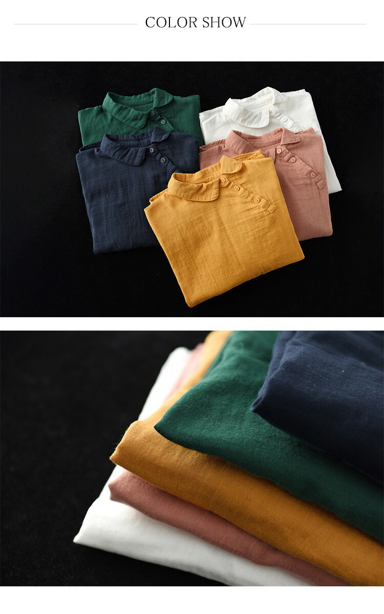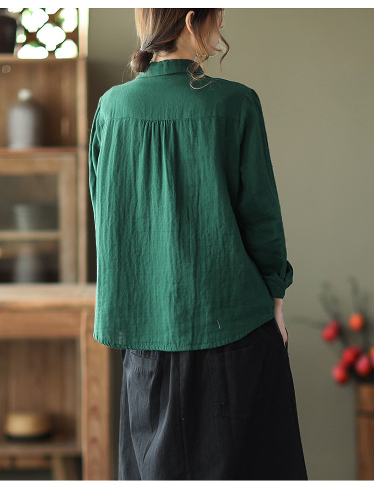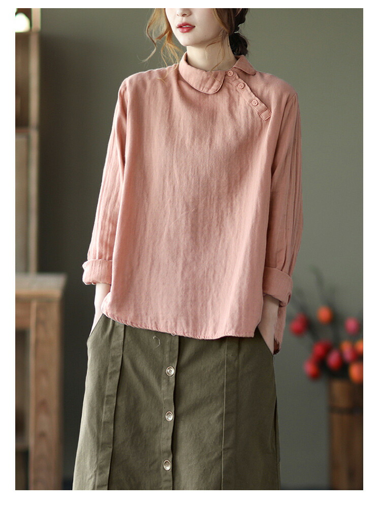 襟デザイン可愛い長袖綿シャツ ガーゼシ