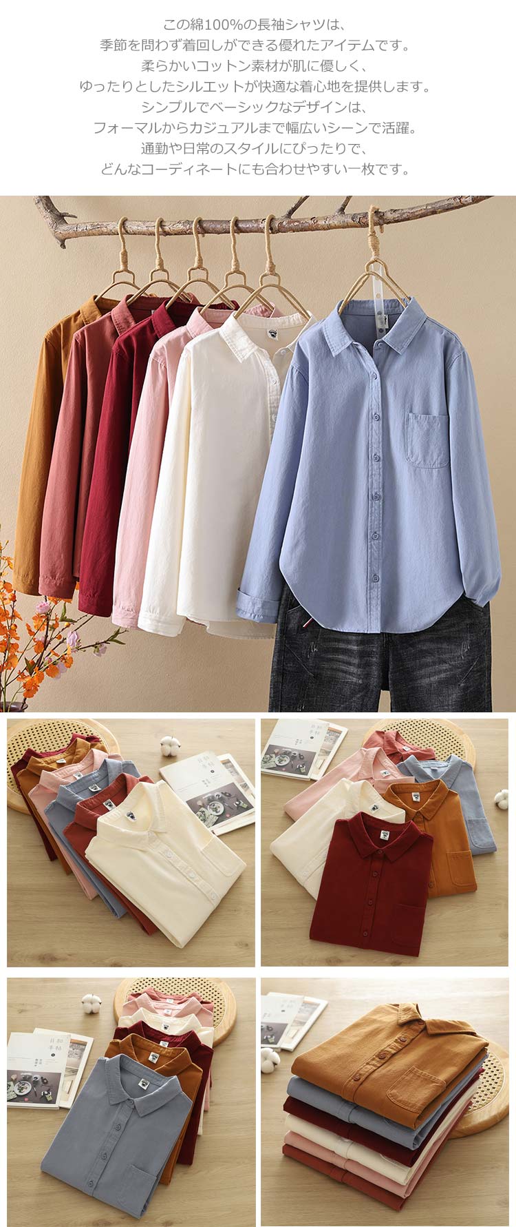 肌触り優れる やさしいシャツ 長そでブ