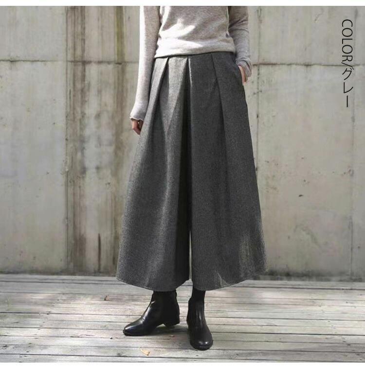 秋冬向きストレッチ効く厚手ワイドパンツ