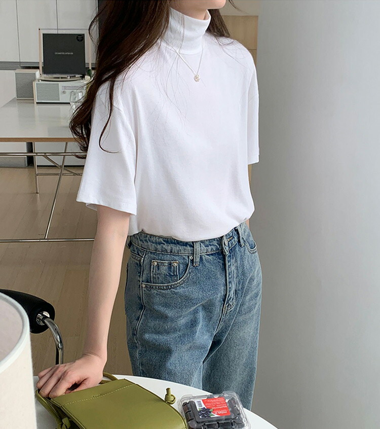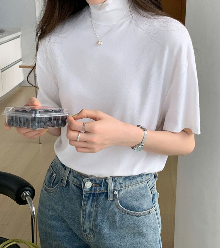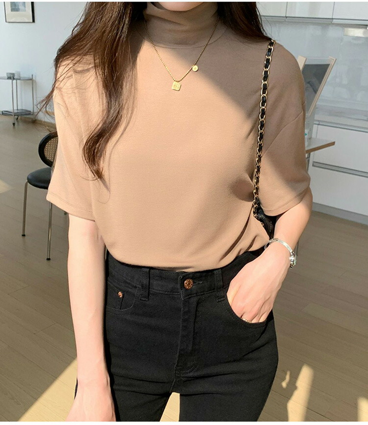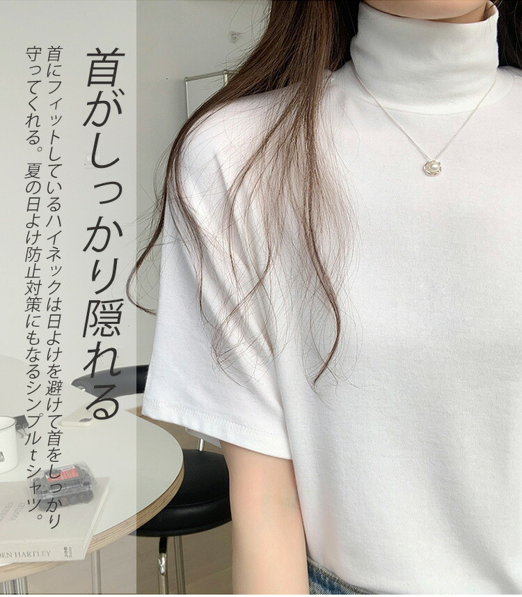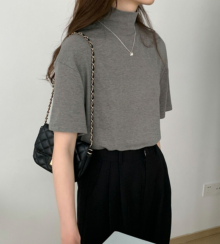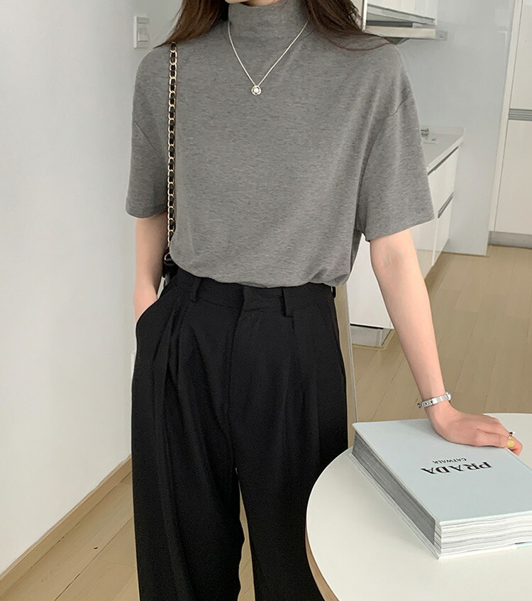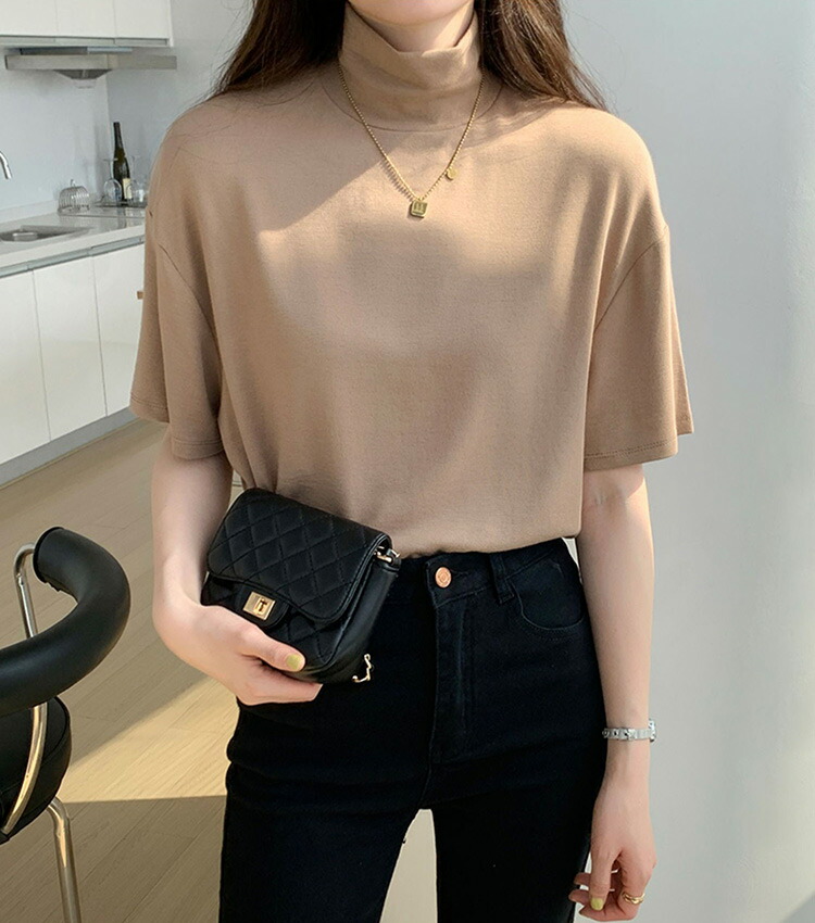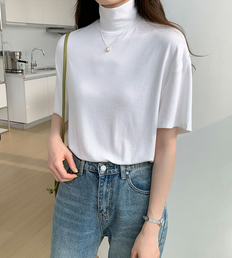 首もとをおしゃれに隠せるハイネック半袖