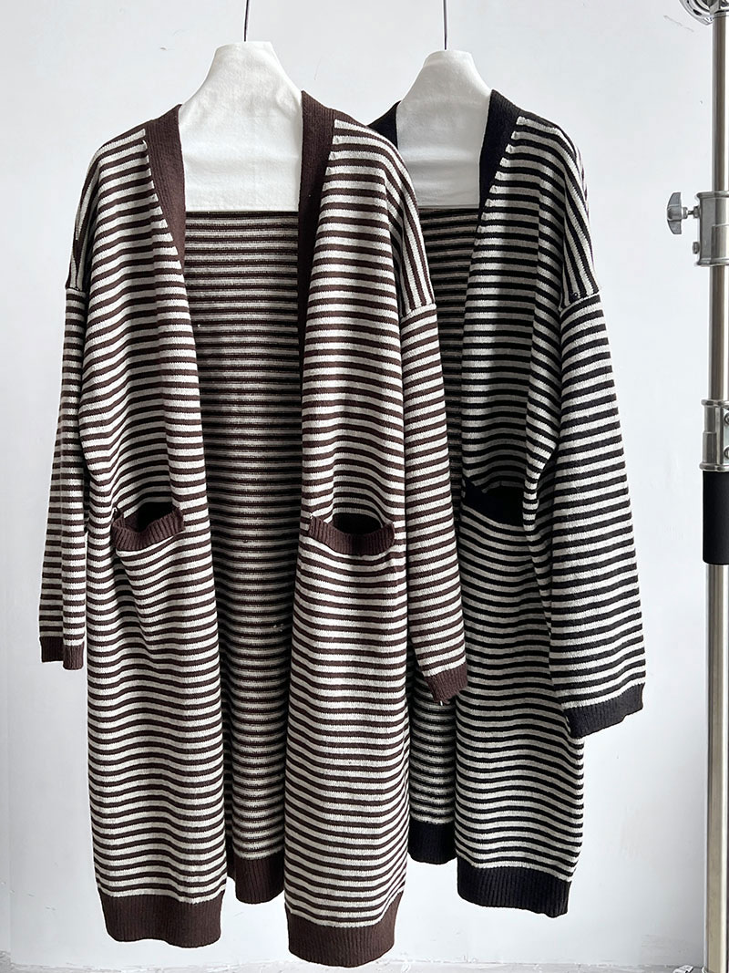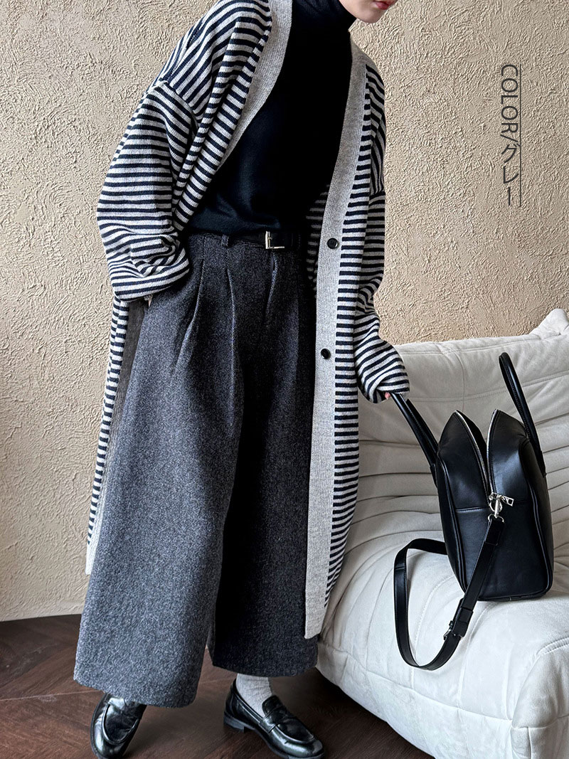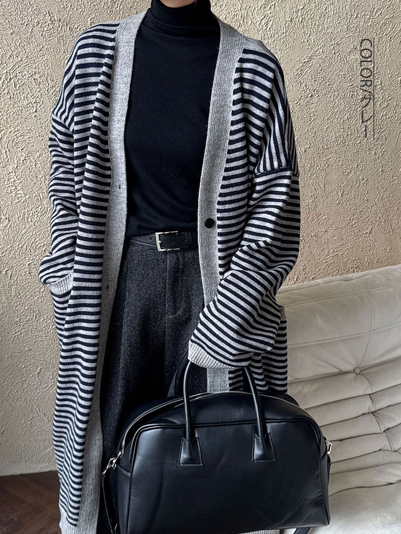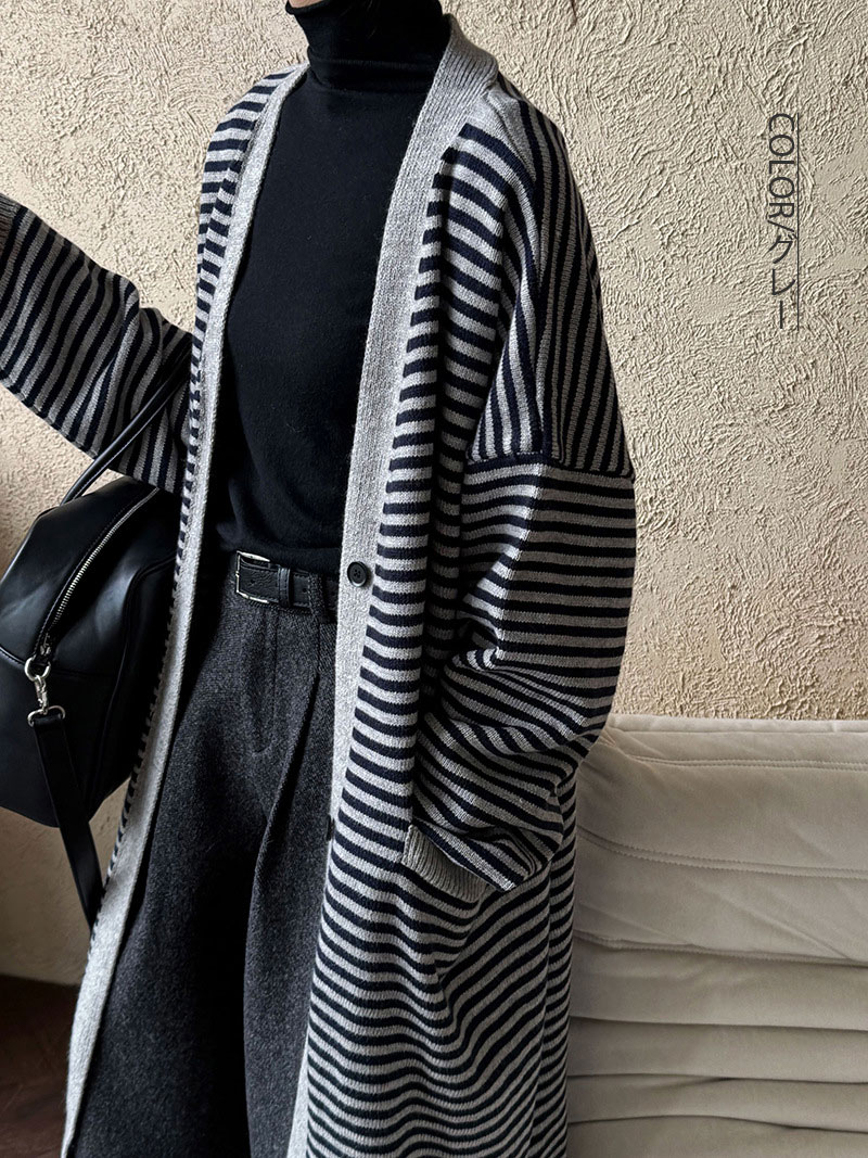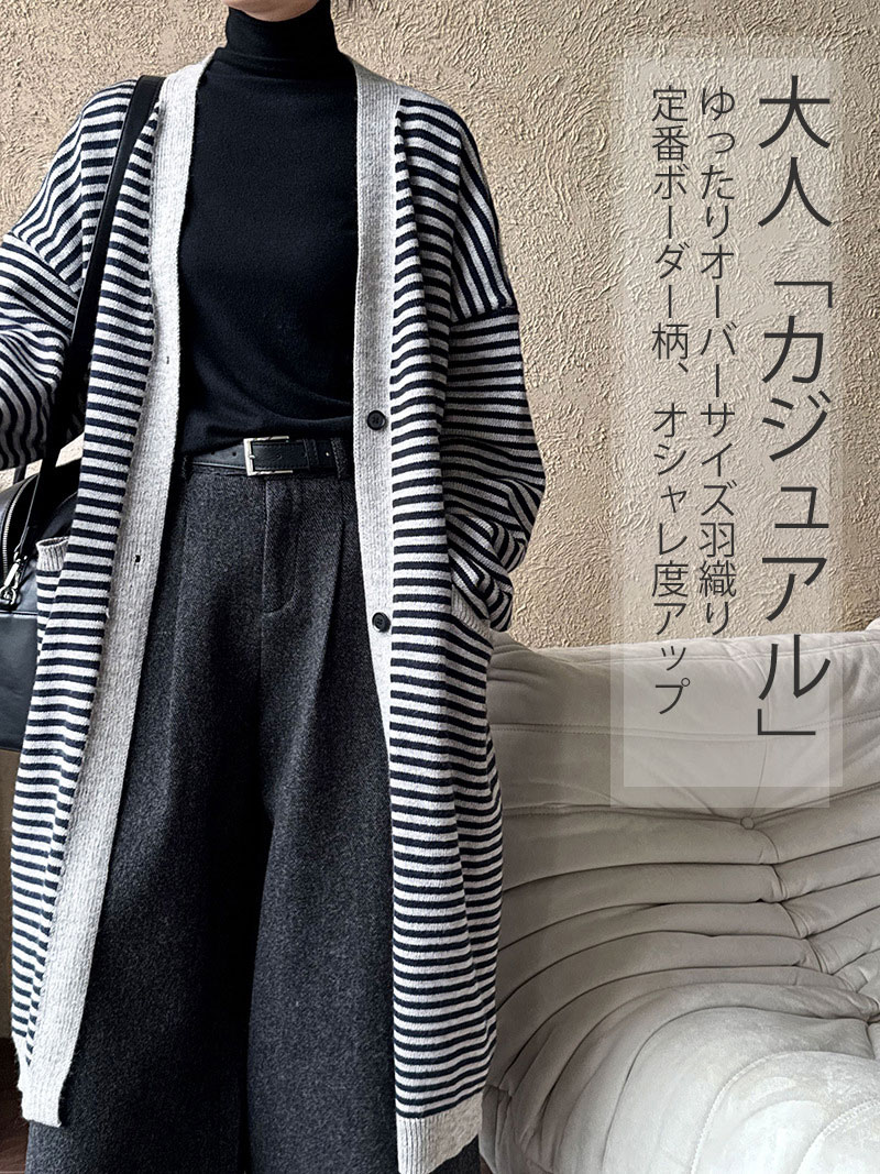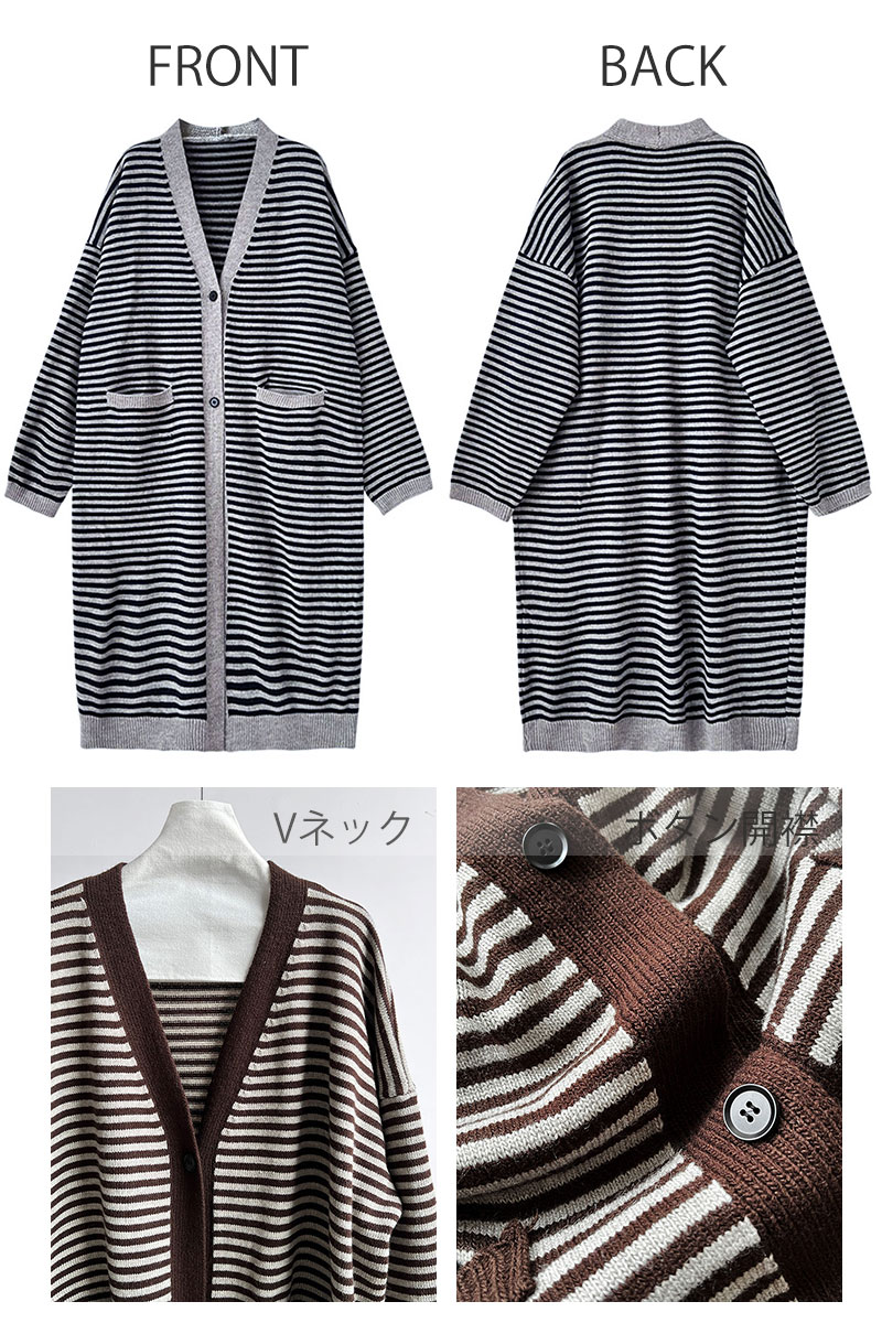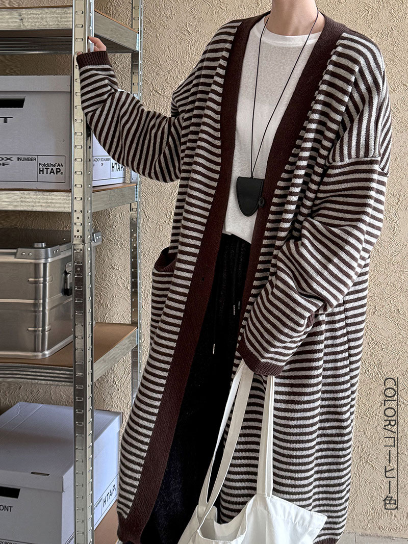 ボーラー柄ロングニットカーディガン ウ