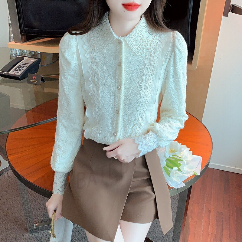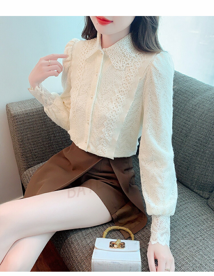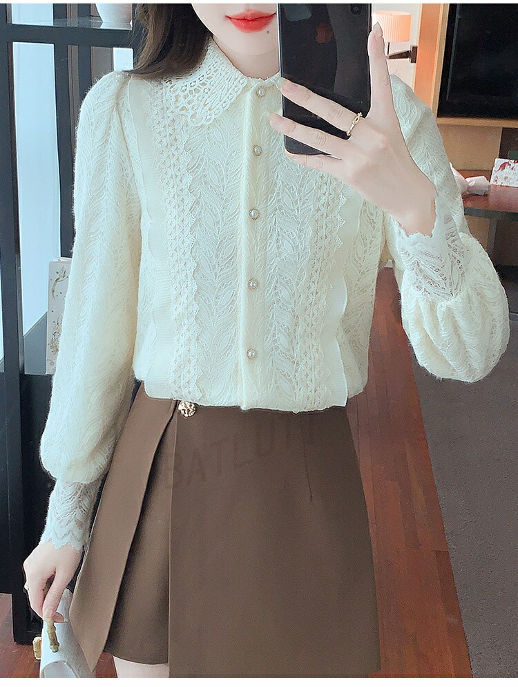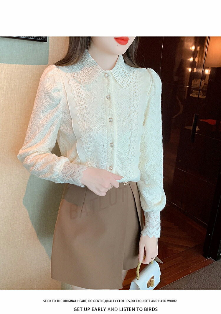 商品名 ブラウス レディースシャツ 長袖 レディース カジュアル 無地 レース トップス 体型カバー シャツ 厚手 シンプル 立ち襟 前開き ファション 花柄 普段使い 大人 二次会 きれいめ ゆったり プレゼント オフィス 春秋冬 20代 30代 40代 50代 大きいサイズ 送料無料