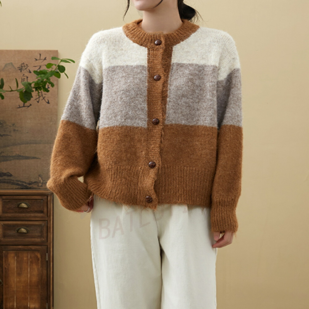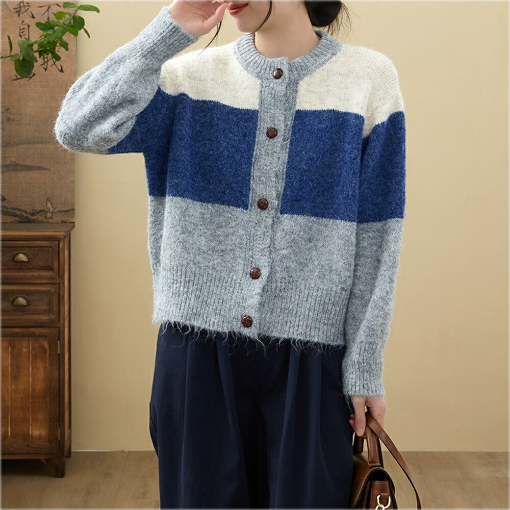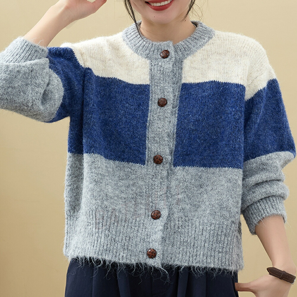 商品名 カーディガン レディース 春 秋 冬 ニット セーター クルーネック 長袖 厚手 アウター ボレロ 羽織り ニットカーディガン トップス 通勤 オフィス 上品 敬老の日 プレゼント パッチワーク 大きいサイズ 送料無料