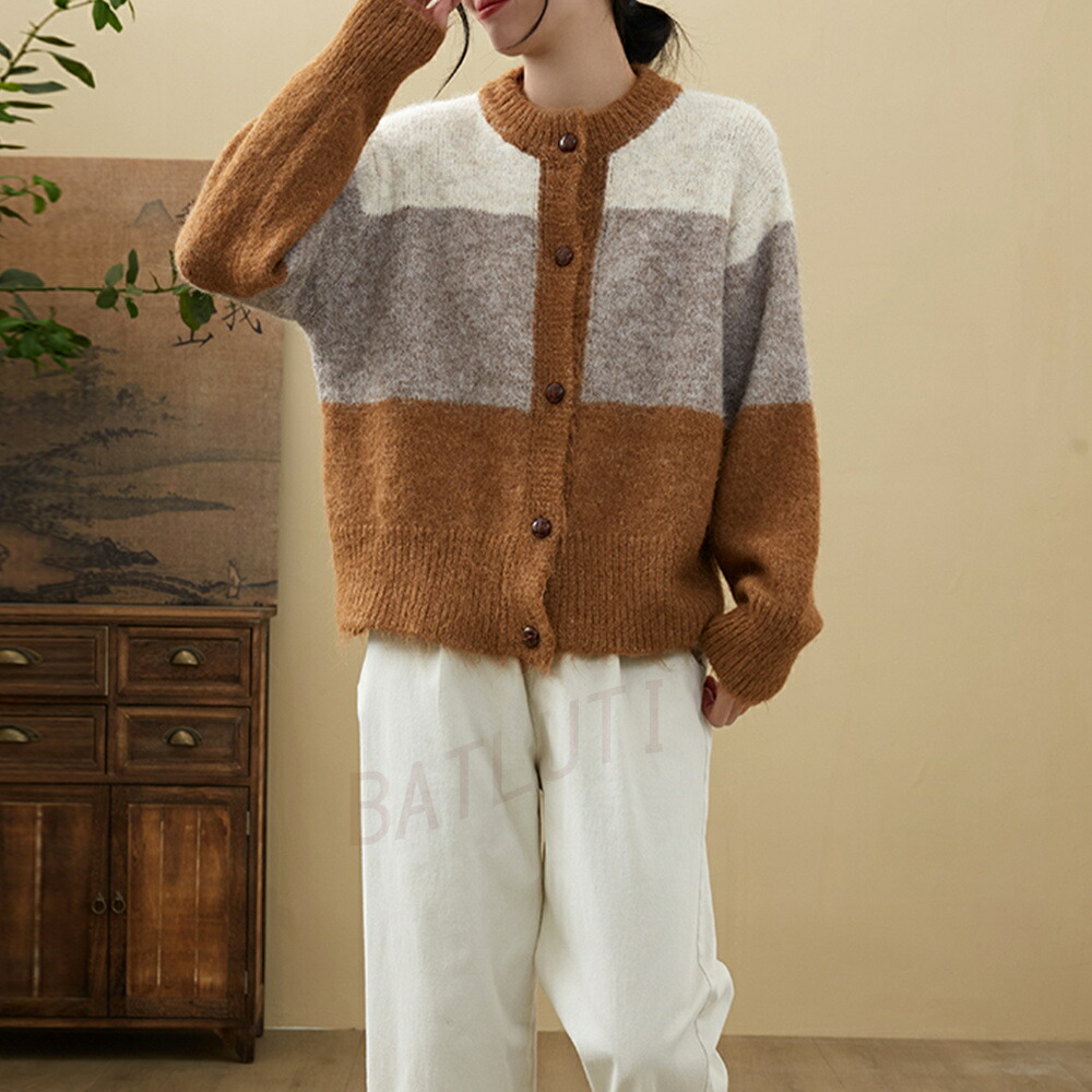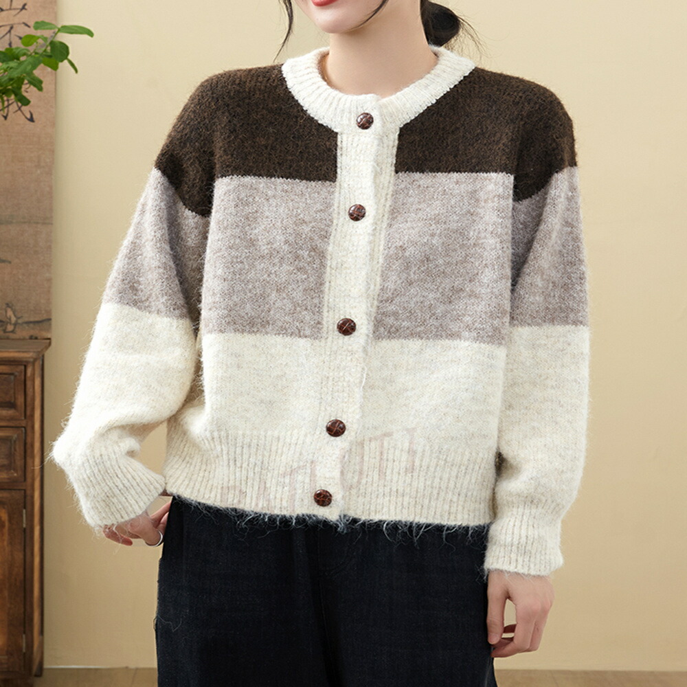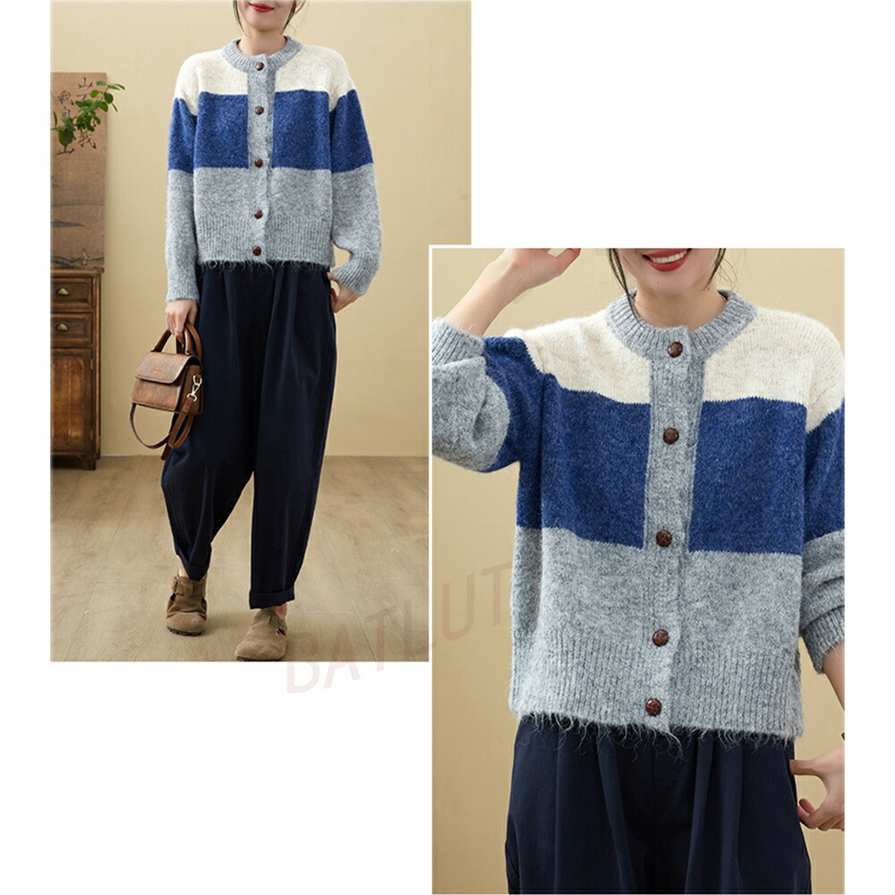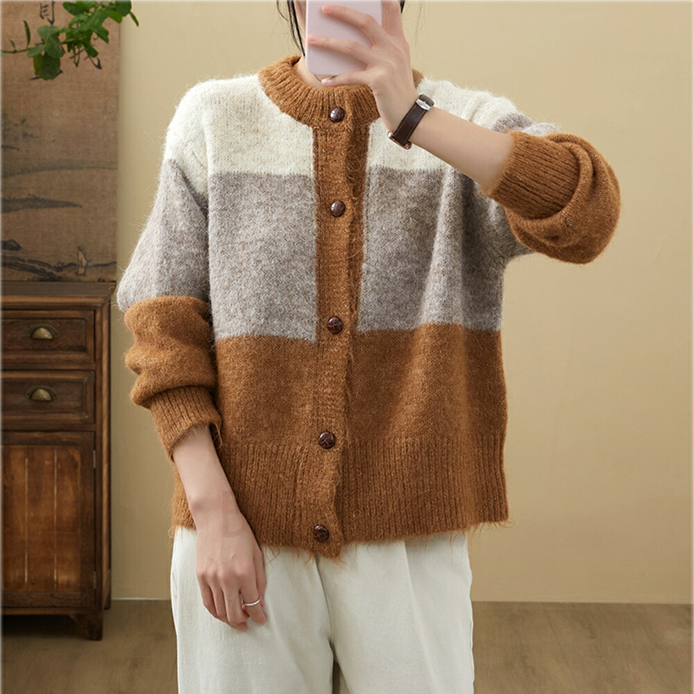 商品名 カーディガン レディース 春 秋 冬 ニット セーター クルーネック 長袖 厚手 アウター ボレロ 羽織り ニットカーディガン トップス 通勤 オフィス 上品 敬老の日 プレゼント パッチワーク 大きいサイズ 送料無料