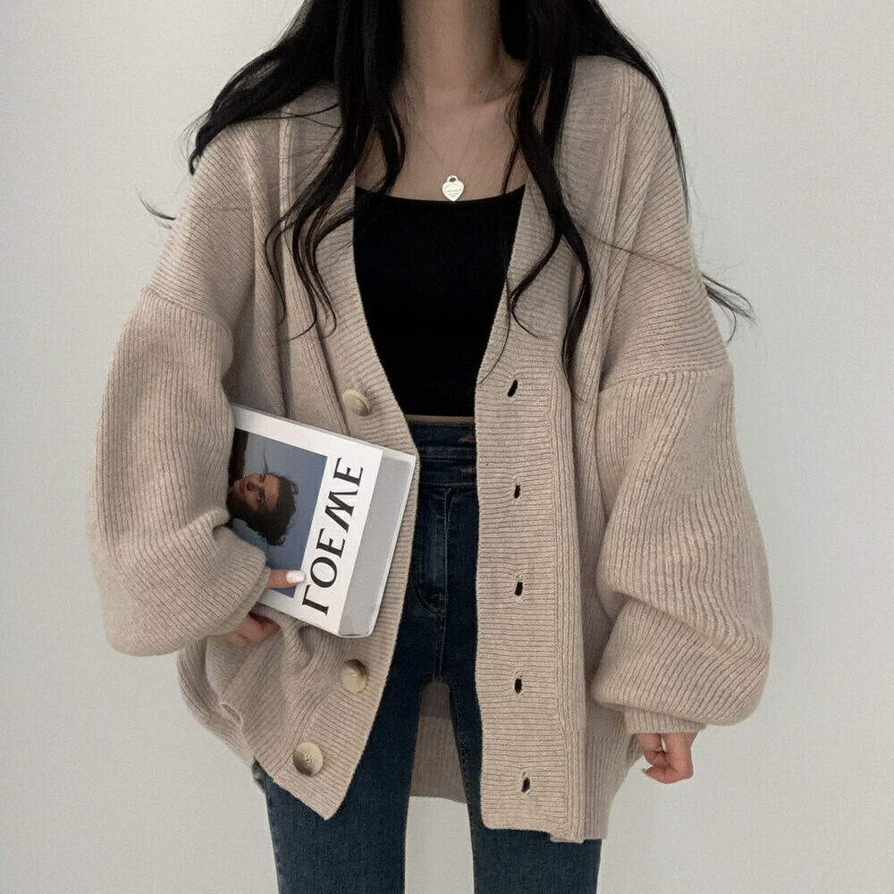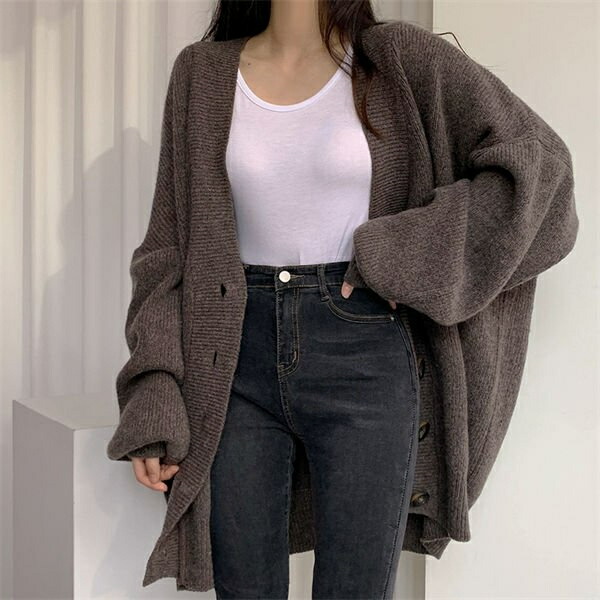 ボタンの開閉具合で着こなしも自由自在のニットカーディガン。ゆったりの袖幅がオトナ可愛いルックスに。ジュアルな着こなしをしたいなら、インナーはtシャツなどを着ても抜群におしゃれです。