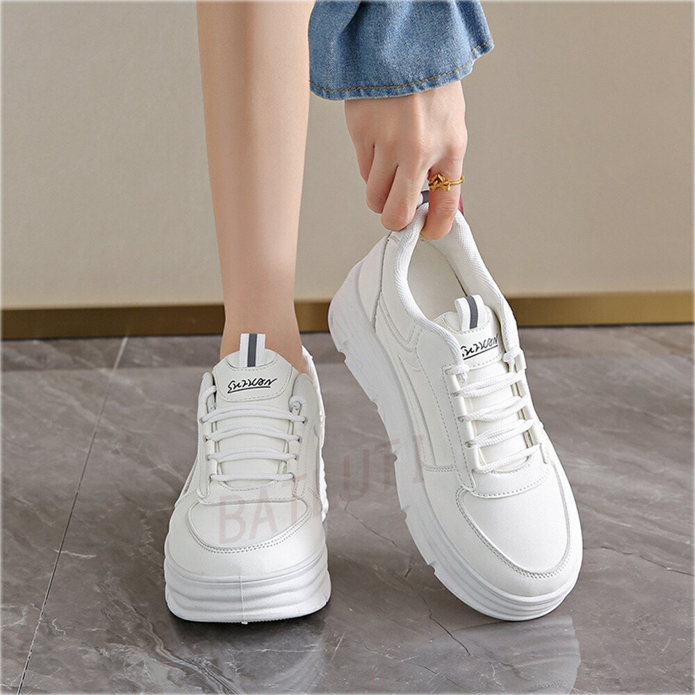 商品名 厚底スニーカー レディース スポーツシューズ 靴 スポーツ 厚底シューズ 滑り止め 防水 美脚 脚長効果 歩きやすい 疲れない 痛くない 通気 シンプル 韓国風 フラット 学生 大きいサイズ 4cm 通勤 通学 おしゃれ クラシック シンプル 送料無料