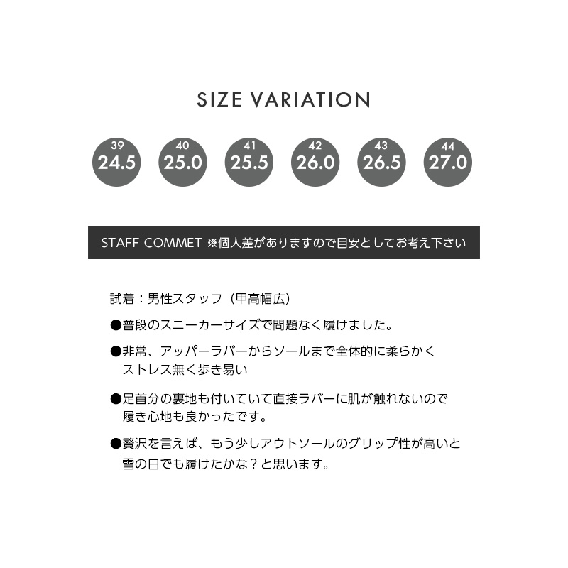 サイズ: 39(24.5cm~25cm) 40(25cm~25.5cm) 41(25.5cm~26cm) 42(26cm~26.5cm) 43(26.5cm~27cm) 44(27cm~27.5cm)