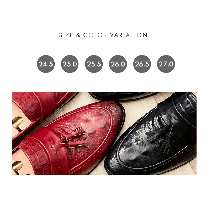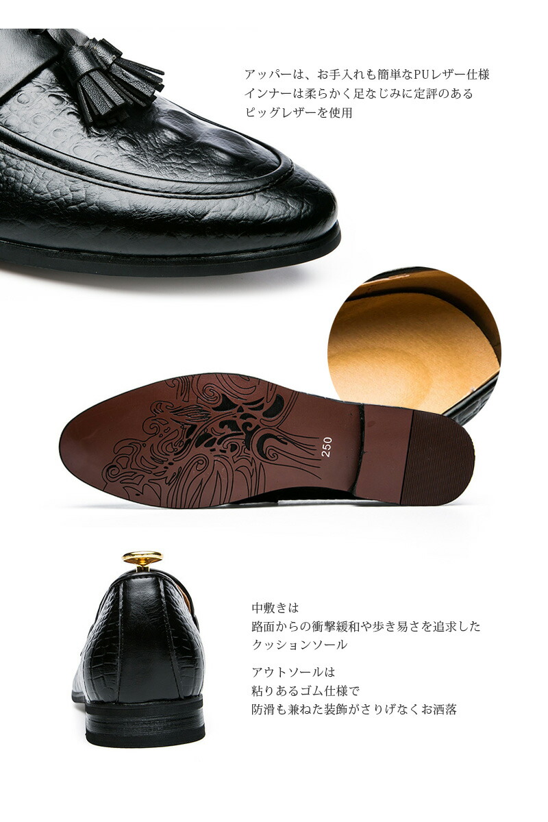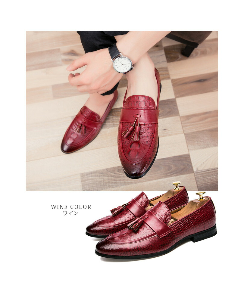 クロコ型押し タッセル ローファー靴
