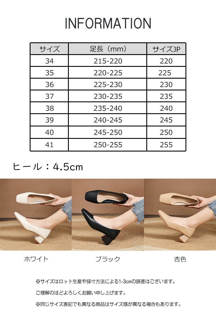 ※お取り扱い前に、商品付属タグの記載もご確認下さい。商品情報商品名 パンプス レディース 本革 シューズ ローヒール 無地 スクエア 春夏 ビジネス オフィス 柔らかい 痛くない素材 本革カラー ブラック|杏色|ホワイトサイズ 34|35|36|37|38|39|40|41生産国 中国包装について 環境保護の観点から、「簡易包装」を推進しております明細書について 当店ではエコロジーと個人情報流出防止のため、ご指示の無い限り明細書を発行しておりません。