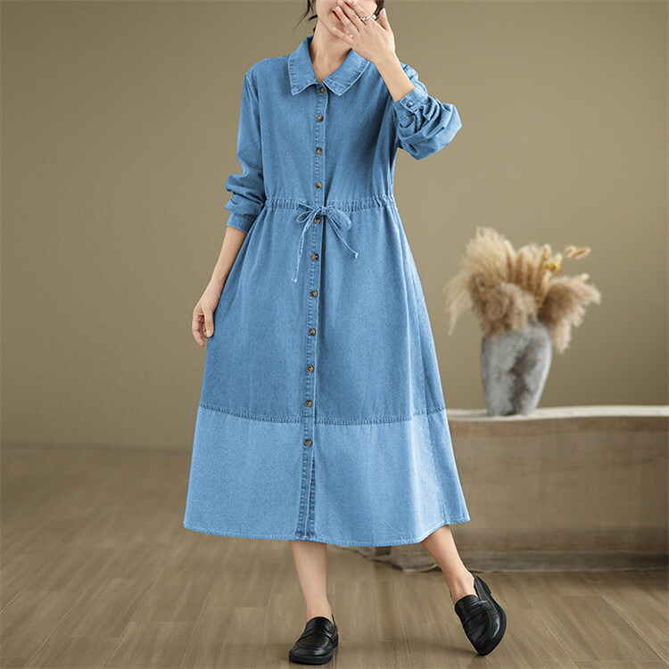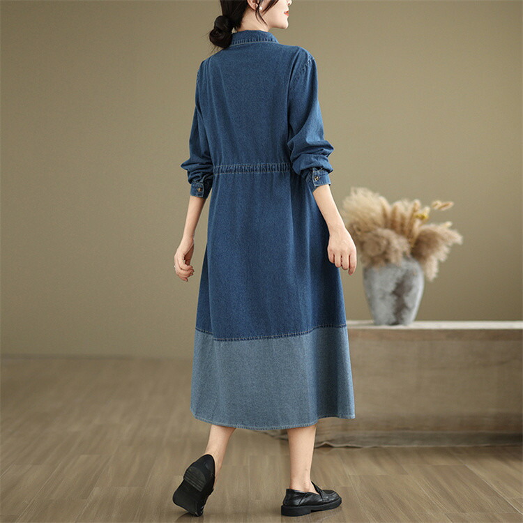 デニムワンピース ワンピース レディース 春秋 デニム シャツワンピース リボン 長袖 前開 OLレディースファッション シャツワンピース