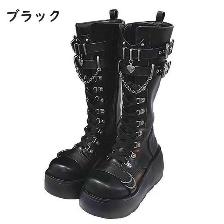 ロリータ風 厚底ブーツ レディース 編上げ レースアップ ハイブーツ パンク lolita パンプス 大きいサイズ お嬢様 日常 美脚 文化祭 学園祭 エベント ハロウィンコスチューム