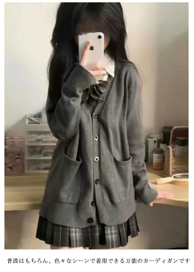 商品名 スクールカーディガン レディース 秋服 JK制服 学生 トップス セーター アウター カーディガン 服 無地 羽織 女子 高校生 中学生 ニット スクールカーディガン 春服 春 通学 秋 冬 プレゼント