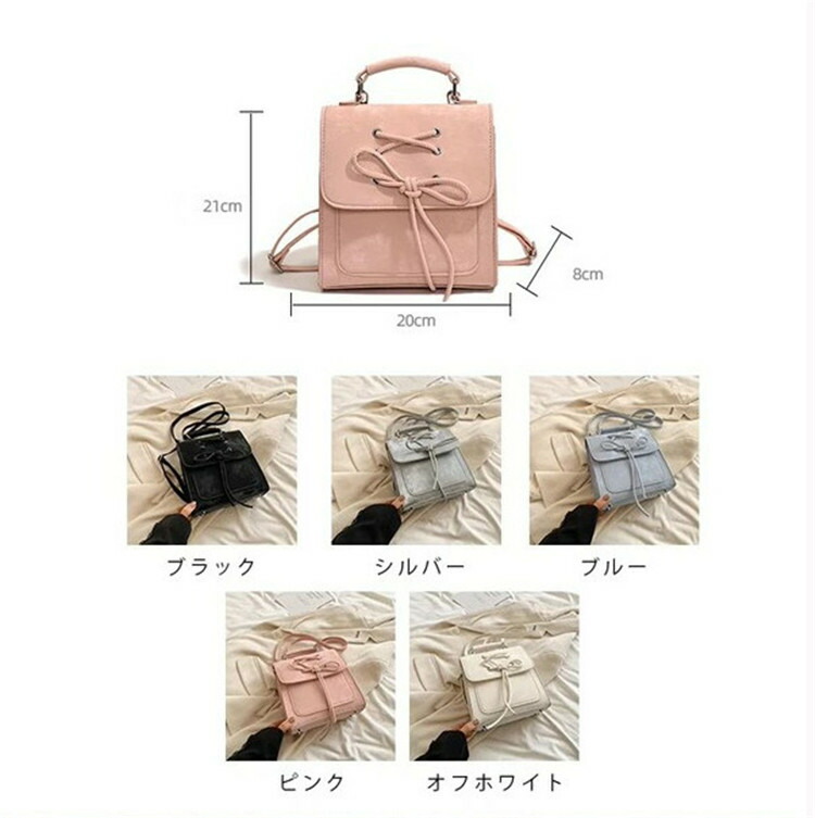 商品名 ショルダーバッグ レディース スクエアバッグ スクエア バックパック 韓国風 斜めがけ リボン トートバッグ リュック 合皮 大容量 リゾート バカンス 学生 塾 お出かけ デート 鞄 ブラック ブルー シルバー 通勤 通学 大人 仕事 旅行