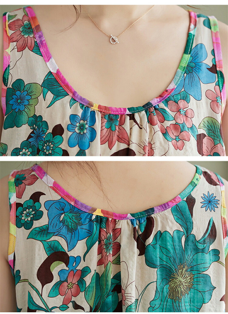商品名 ワンピース ノースリーブ レディース キャミソールワンピース コットン100% 夏 Aライン 花柄 薄手 袖なし ロング 30代 20代 ワンピ キャミワンピ リゾート 旅行 Aラインワンピ おしゃれ オトナ カジュアル ルームウェア 夏物 可愛い ゆったり