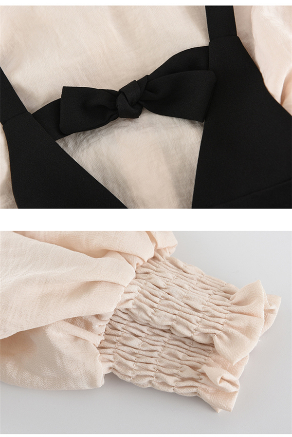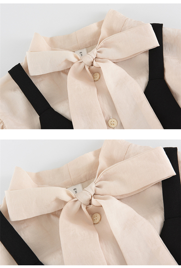 シアースリーブ ドッキングシャツ ボウタイシャツブラウス