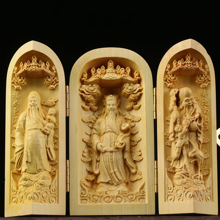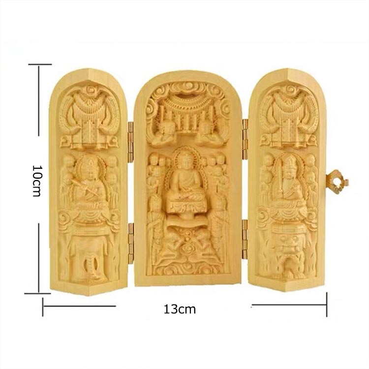 精緻な柘植材の彫刻 木製 卍仏像 携帯