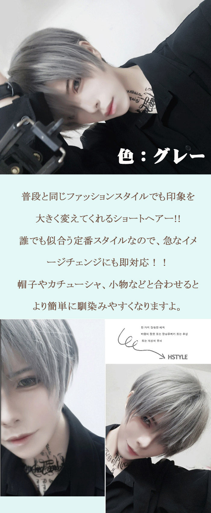 Item Information商品名 ウィッグ フルウィッグ ショート メンズ レディース かつら 男性 メンズウィッグ かつら 短い髪 カツラ コスプレ cosplay 日常 耐熱 遊び ハロウィン 学校 仕事 面接 ネット付き 男女兼用素材 耐熱ファイバー(耐熱温度:120度以内)サイズ 前髪:約16cm±3cm 後髪:約30cm±3cm フック式のアジャスター付き、頭周りにあわせて段階調節可能(頭周り:約55-58cm)カラー ブラック、グレー、アッシュグレー、グレー+パープル、アッシュグリーン、ピンクパープルグラデウィッグについて: つけ方: