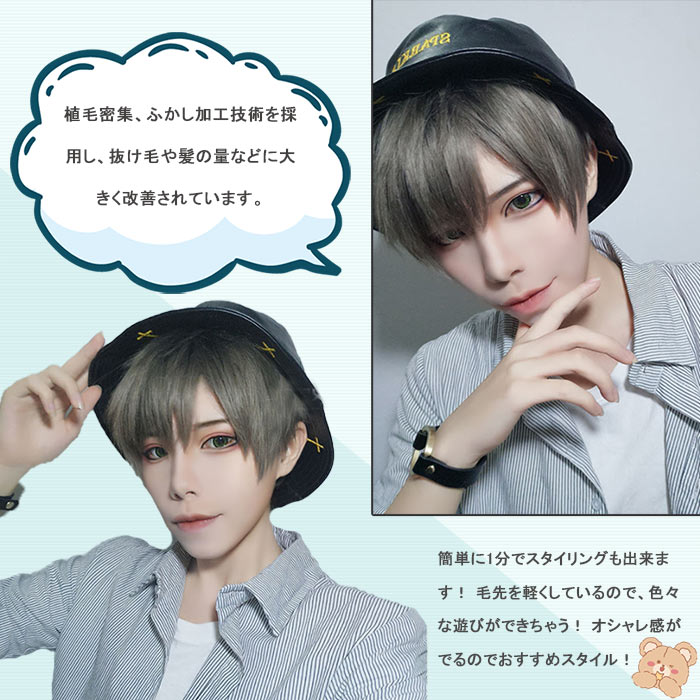 ウィッグ かつら メンズ ショート 男装 イケメン ハンサム 自然 小顔 耐熱ふわふわ イメチェン 男女兼用