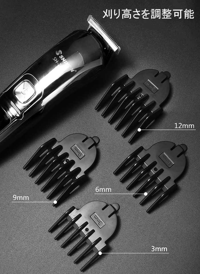刈り高さ調整ダイヤル:3mm/6mm/9mm/12mm